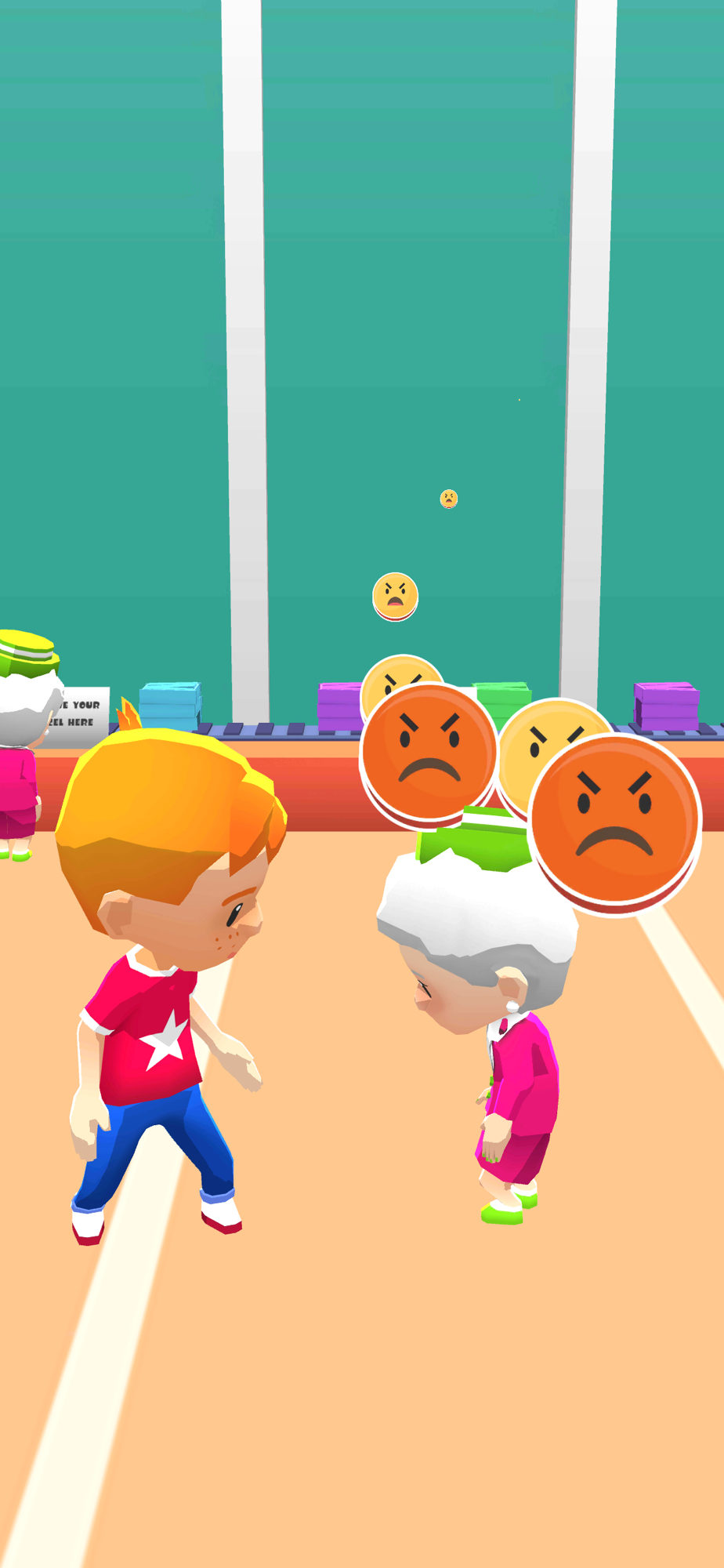 - move in the line to the post desk. Avoid angry grannies!