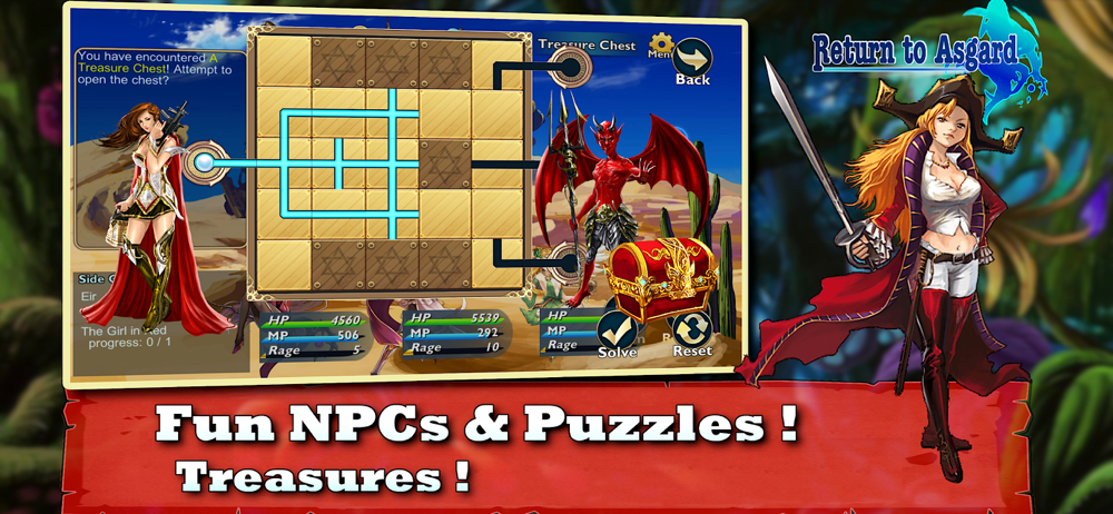 Collect treasures, solve puzzles, interact with entertaining NPCs, and fight invincible chapter bosses! - Lake Monster, Fenrir, Fafnir, Skadi, Nidhogg, Jormungandr, Surtr, Hel, Loki and many more!