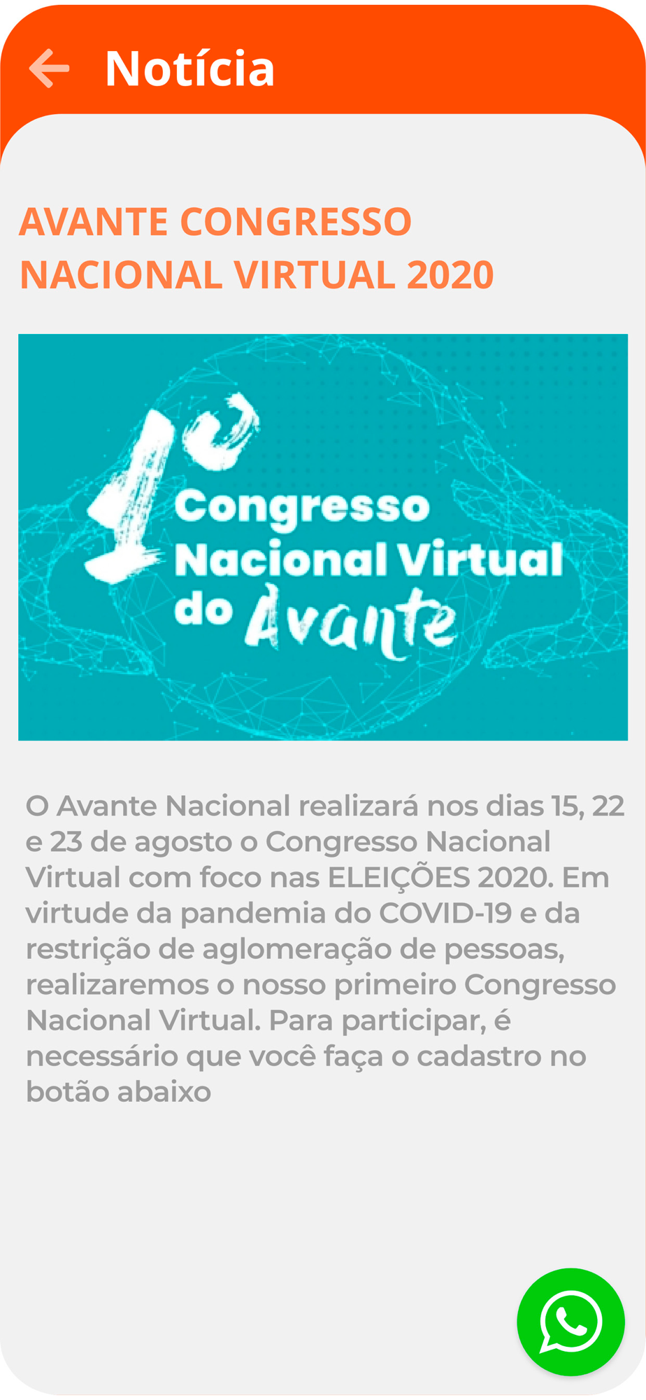 Novo aplicativo do Partido Avante 70. Tenha acesso sua carteirinha de Filiado, fique por dentro das ltimas notcias, participe de pesquisas e mantenha seus dados atualizados.