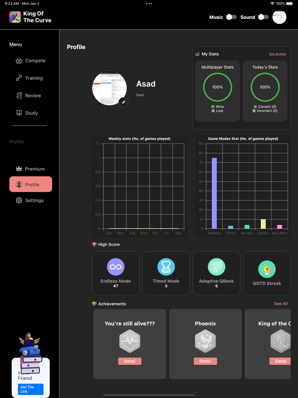 Can studying for the MCAT be fun? Now it is! For a low-cost, you can challenge yourself and your friends to see who can get the highest score. King of the Curve has a variety of questions from ALL sections of the MCAT. Try to beat your own high score in single-player mode, or challenge someone from across the country to see who deserves the crown. Can YOU break the curve?