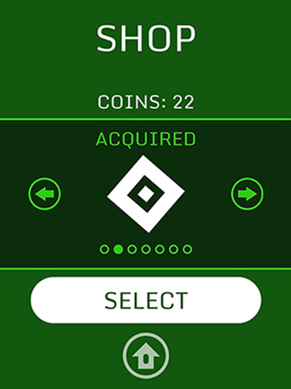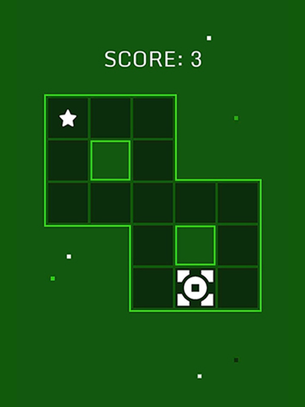 The square moves along the path, tap to collect the star when overtop of it. As the game progresses the square will move faster making it harder to collect each star. These stars can be spent in the shop to customise the look of the moving square.