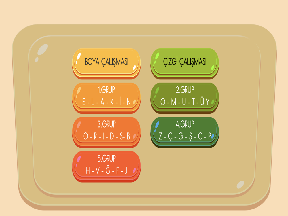 Boyama çalışması ve çizgi çalışması ile öğrenmeyi eğlenceli hale getirdik.