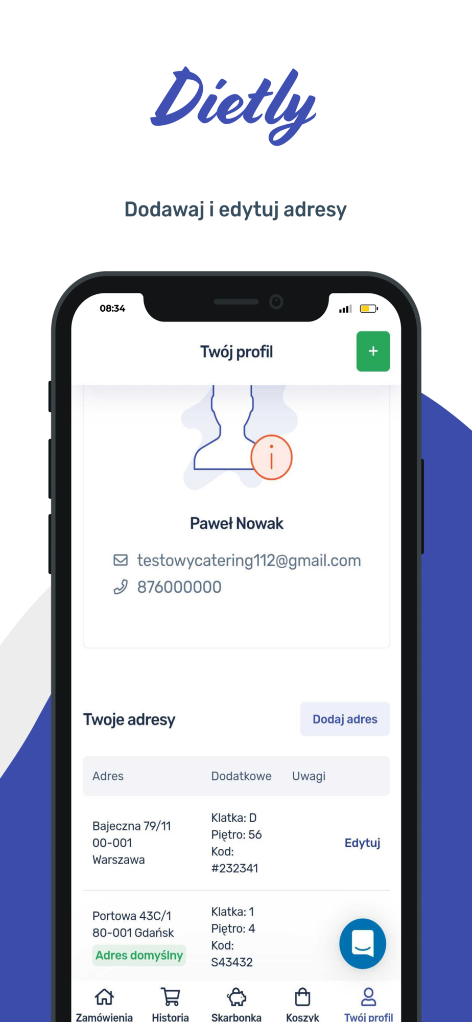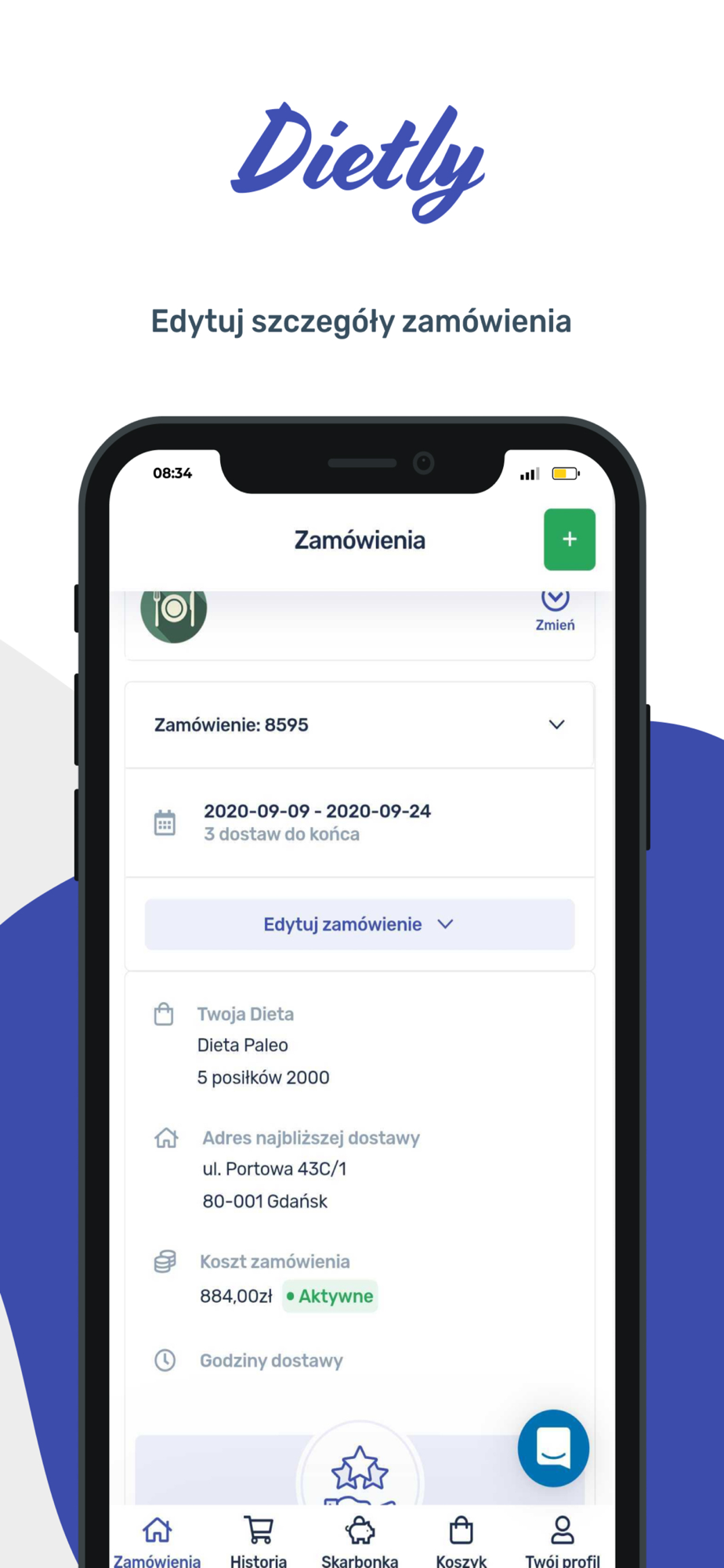Panel Dietly to aplikacja dla osób zamawiających catering dietetyczny. Dzięki niej zarządzanie zamówieniem w cateringu dietetycznym stanie się prostsze i wygodniejsze, niż kiedykolwiek wcześniej. Każdą zmianę “na ostatnią chwilę”, którą do tej pory trzeba było zgłaszać bezpośrednio do cateringu może zostać naniesiona bezpośrednio w aplikacji. Od teraz zmiany adresów, czy dni dostaw są dostępne od ręki. W Twoim Panelu Dietly. Twojej aplikacji do zarządzania zamówieniem.
