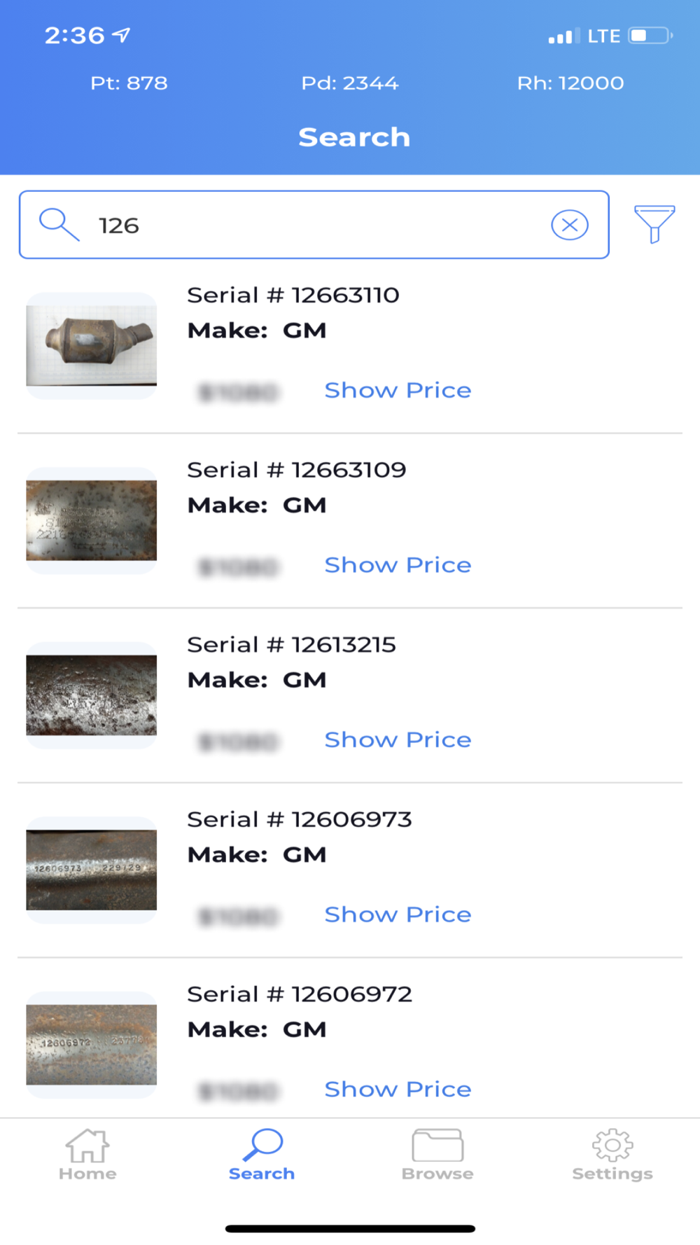Catalytic Converter Database is an online database of catalytic converters based on XRF values. The values are calculated based on current market values every 15 minutes. We are adding newly sampled catalytic converters daily!