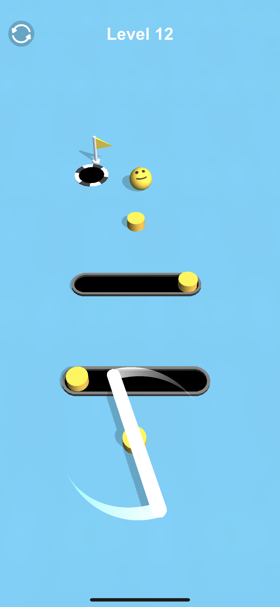Hold and unhold the pins to let the stick change its position, get to the top and score a goal!