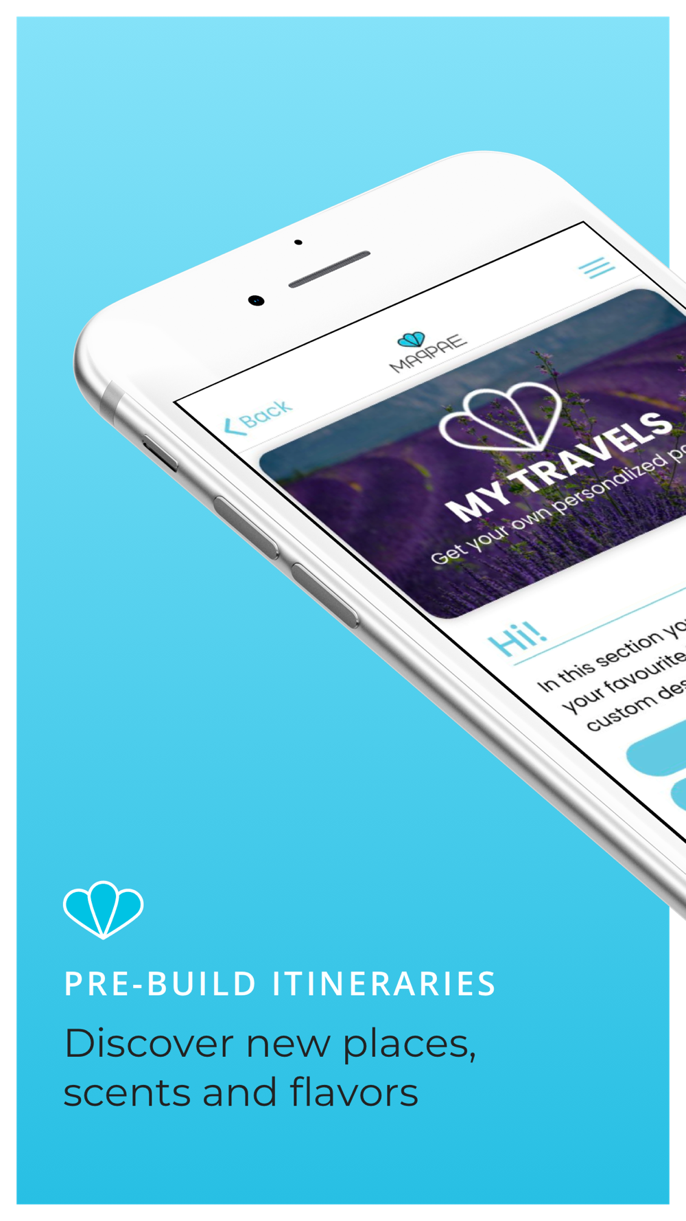 - Access the section “My travels”. Here you can download 12 planned itineraries designed to enjoy the universe of aromatic herbs and fragrances or create your personal wishlist. For each itinerary you have all the information you need during your travel