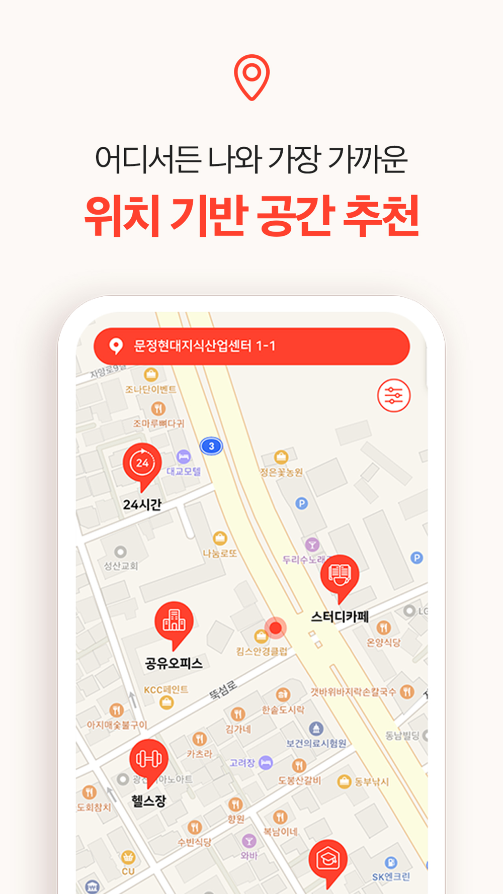 스터디카페, 독서실, 공방, 운동시설 등 다양한 공간을 만나보세요.