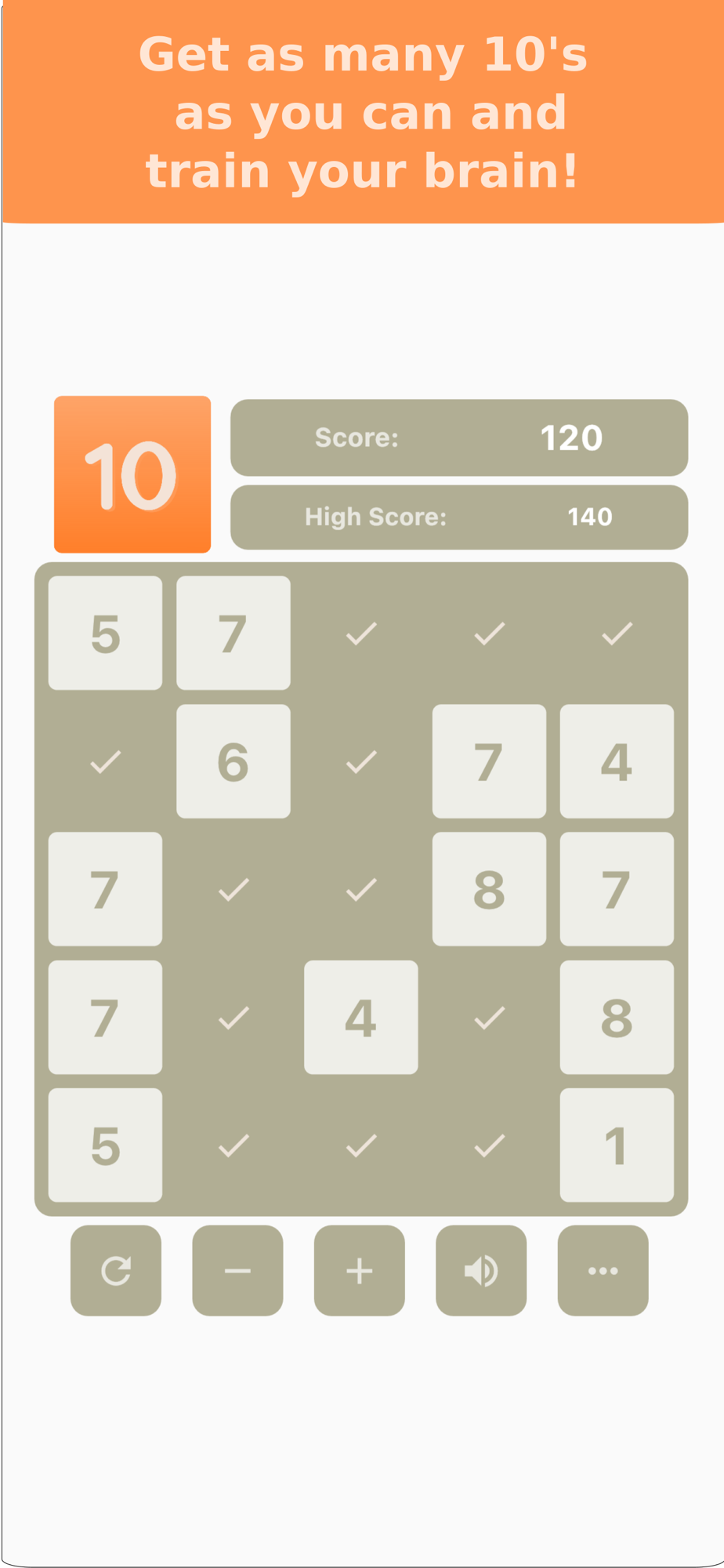 If you like Ten, try our other games like Math-Dare or Pebbles: Brainvita-Senku.
