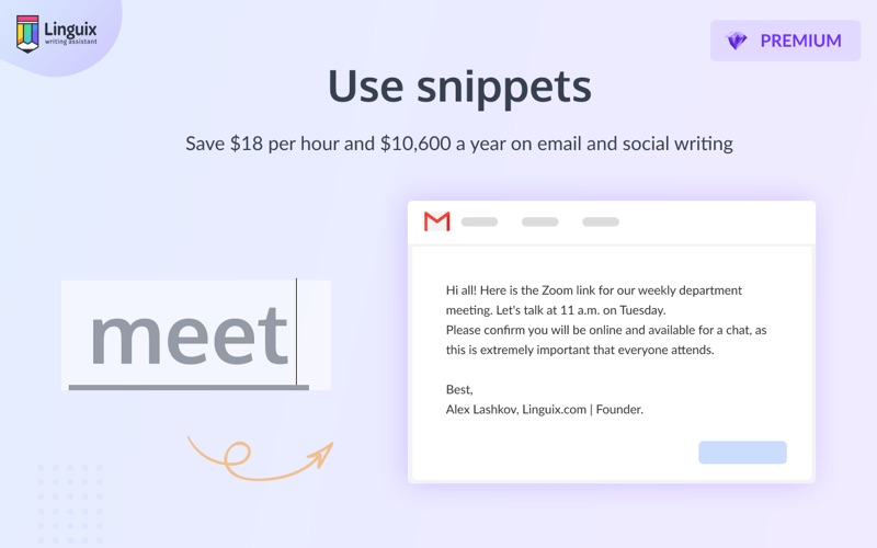 Sign up for Linguix Premium and experience the full power of the AI-based assistant with an additional 1700+ checks for punctuation, grammar, context, and sentence structure, as well as vocabulary enhancement suggestions plus genre-specific writing style recommendations.