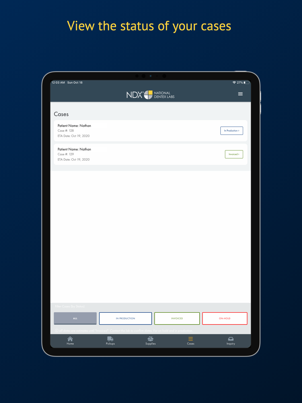 The NDX Mobile App puts our network of dental laboratories in your hands 24/7, 365 days a year. Track your National Dentex cases and communicate with your NDX lab with the touch of a button – right from your mobile device!
