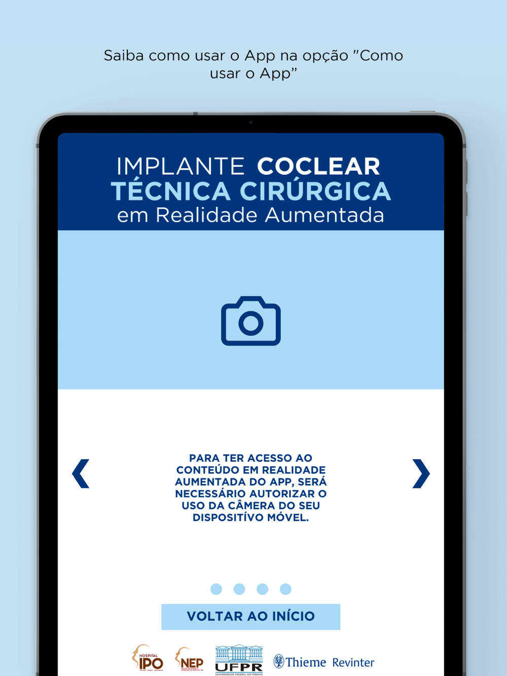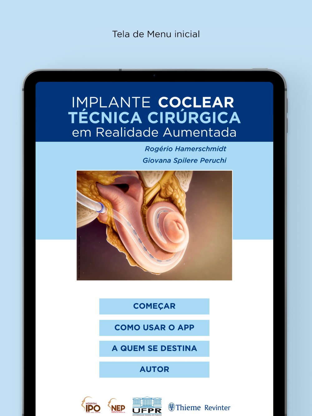 O IPO - Implante Coclear RA é um aplicativo que usa tecnologia de Realidade Aumentada para complementar o conteúdo presente no livro "IPO Implante Coclear" escrito pelo Doutor Rogério Hamerschmidt e pela Doutora Giovana Spilere Peruchi, e publicado pelo IPO-Instituto Paranaense de Otorrinolaringologia em 2020. Essa publicação recebe atualizações digitais de cirurgias captadas em alta resolução, editadas e auxiliadas por computação gráfica para padronizar o ensino e agregar valor digital à publicação impressa.