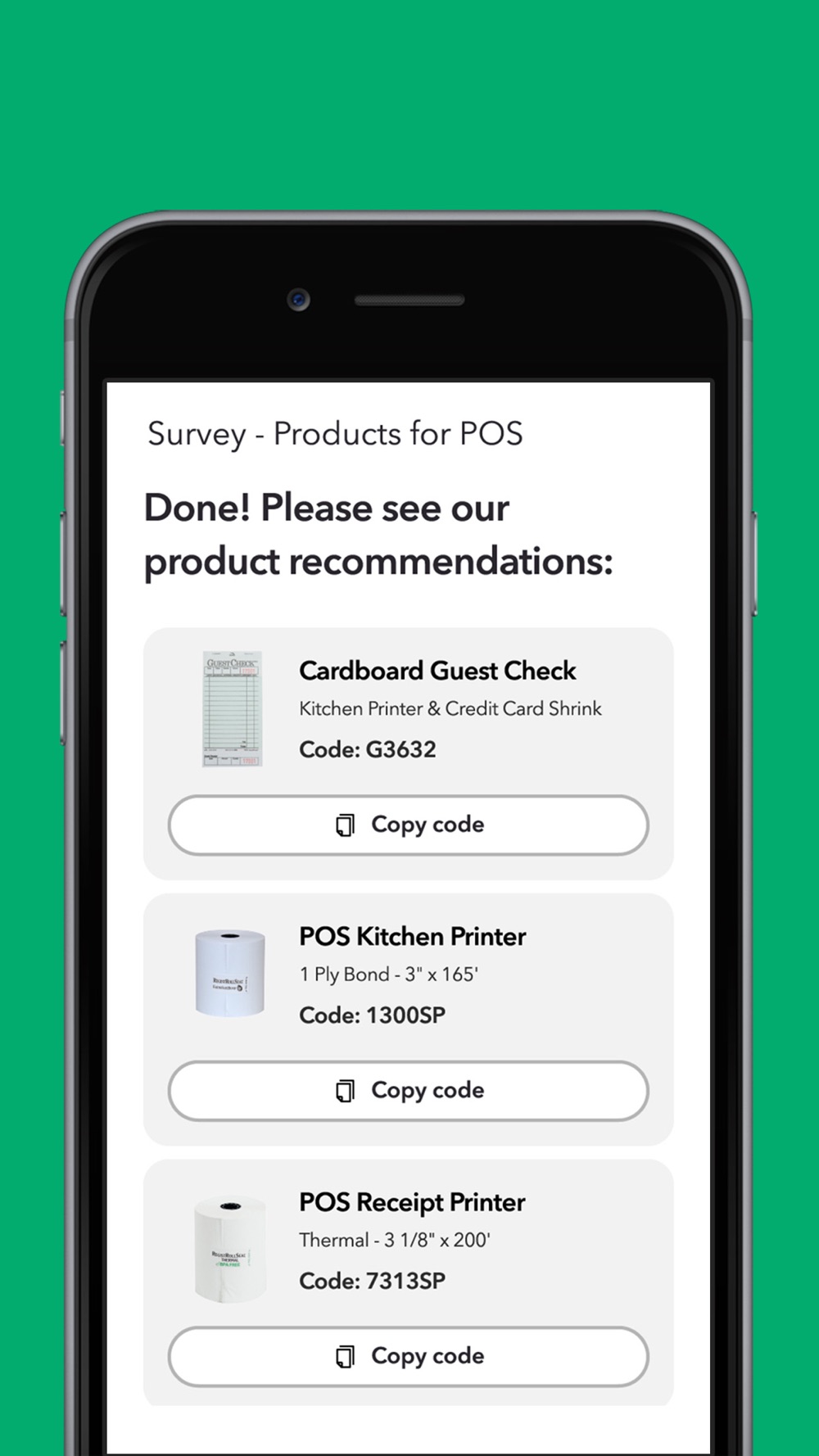 This sales app takes you through a brief survey that asks about your customers’ operations before providing product suggestions based on your input.