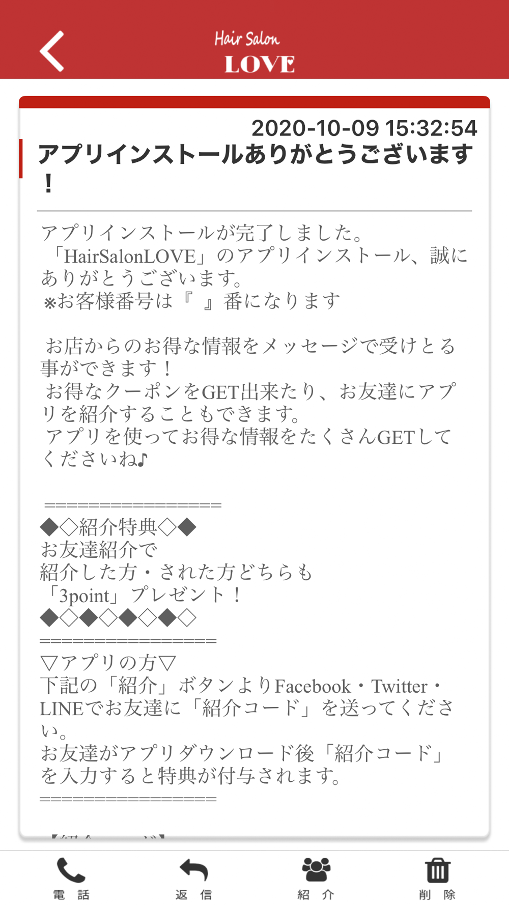 LOVEのアプリをSNSを通じてお友達に紹介する事ができます。