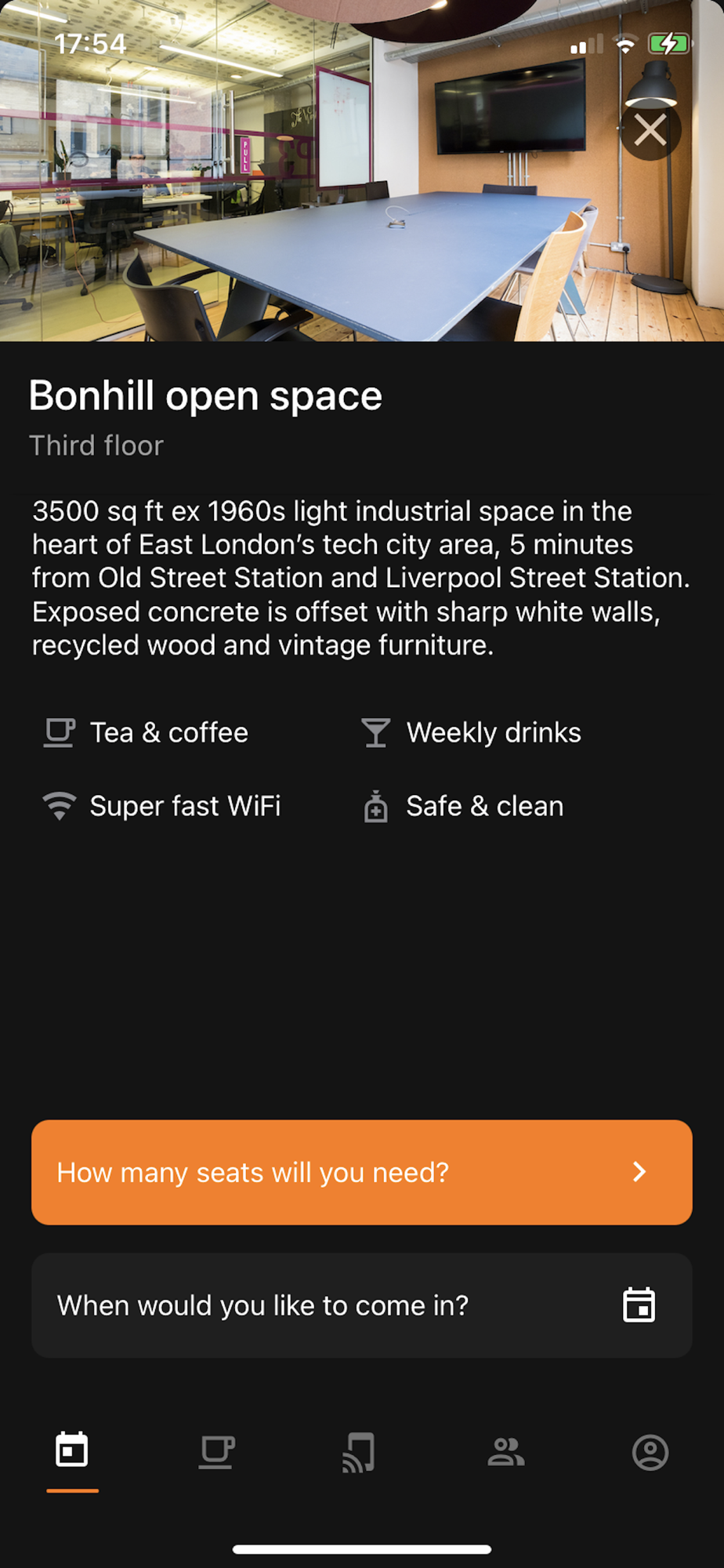 Simply download our app and register and you can start using one of our sites straight away. Book in advance on the app, or simply check in to a desk, lounge or outdoor deck seat or meeting room on arrival.