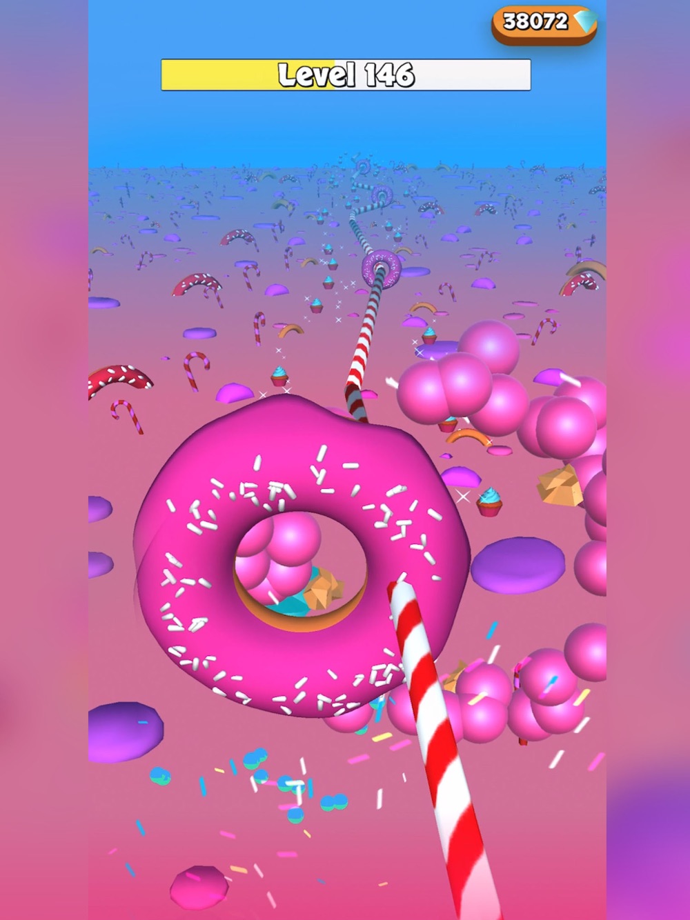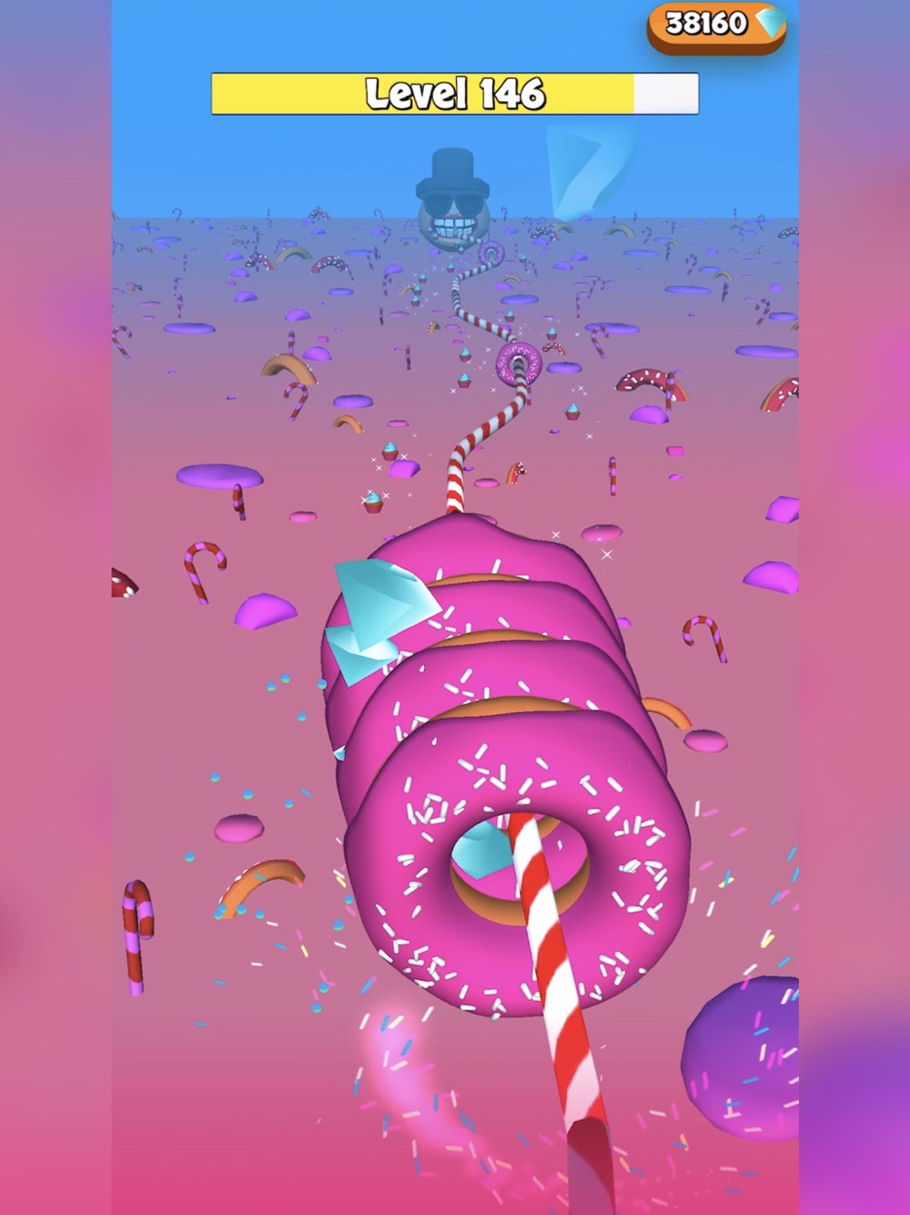 Collect as many donuts as you can to explode the dude at the end of the candy wire.