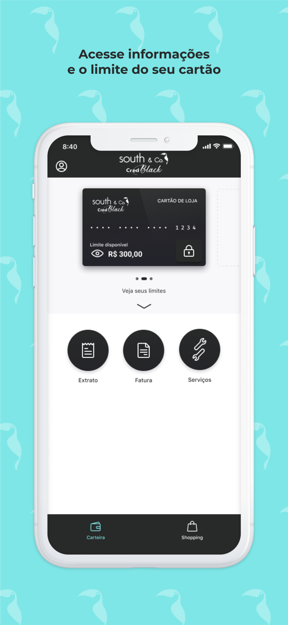 Com o seu aplicativo Credblack você pode acessar seu Cartão South Credblack para acompanhar gastos, conferir seu limite e gerar suas faturas sem sair do conforto e segurança de sua casa.