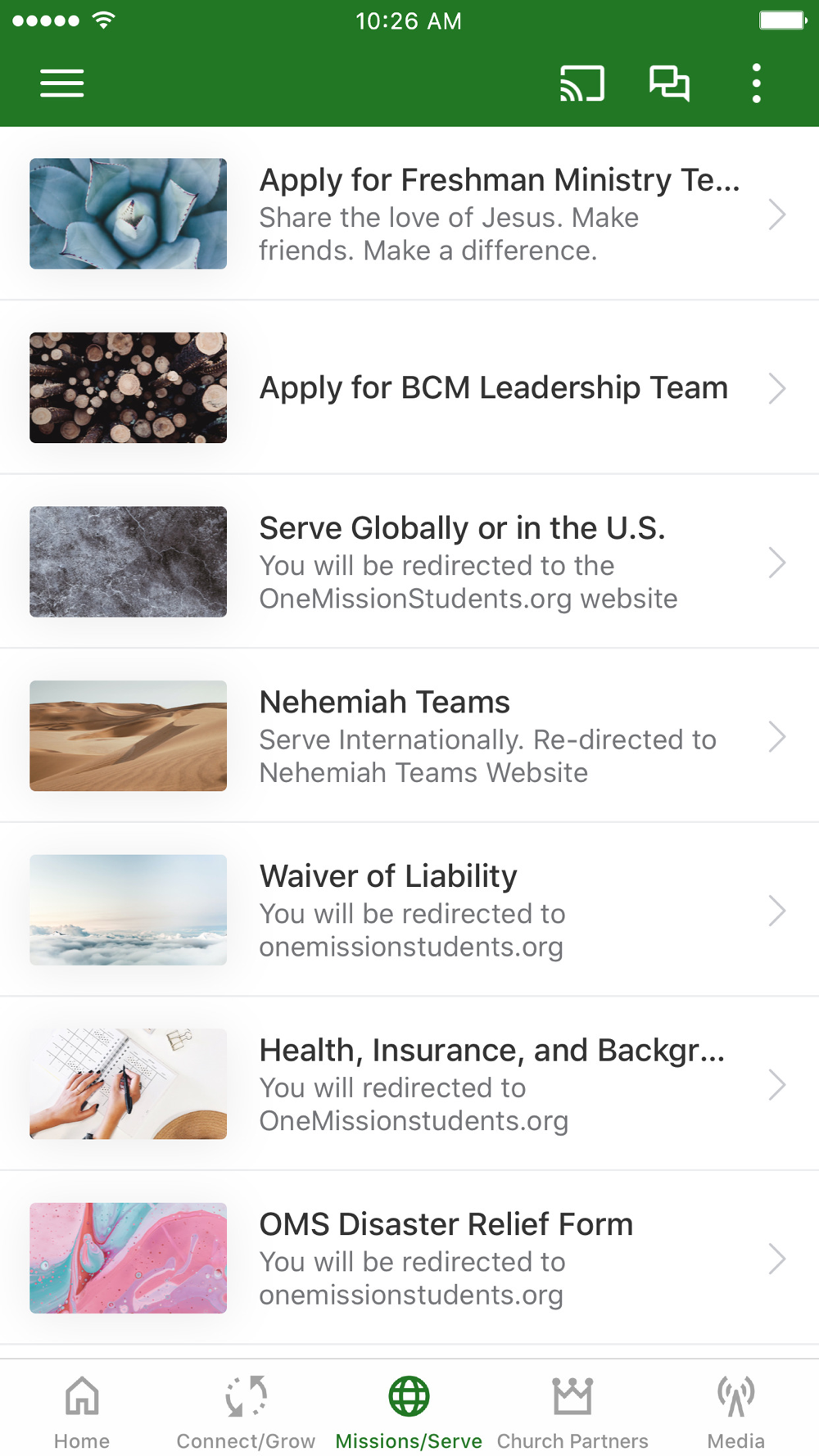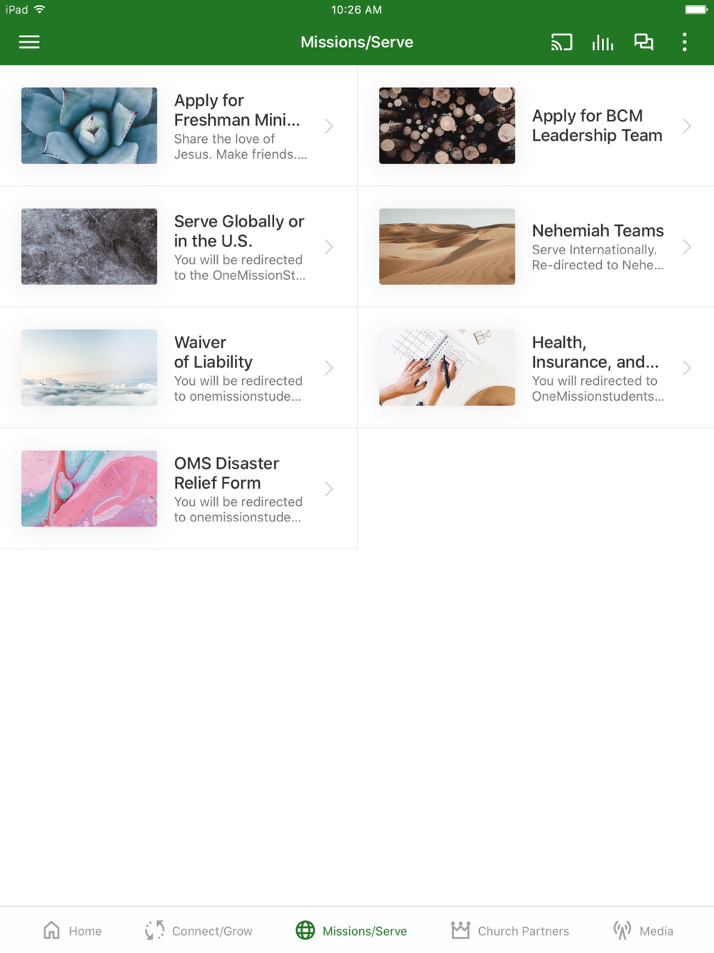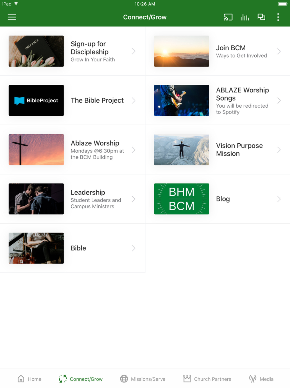 This app will help you stay connected with the day-to-day opportunities and events of the BCM ministries on Birmingham area universities and colleges. With this app you can: