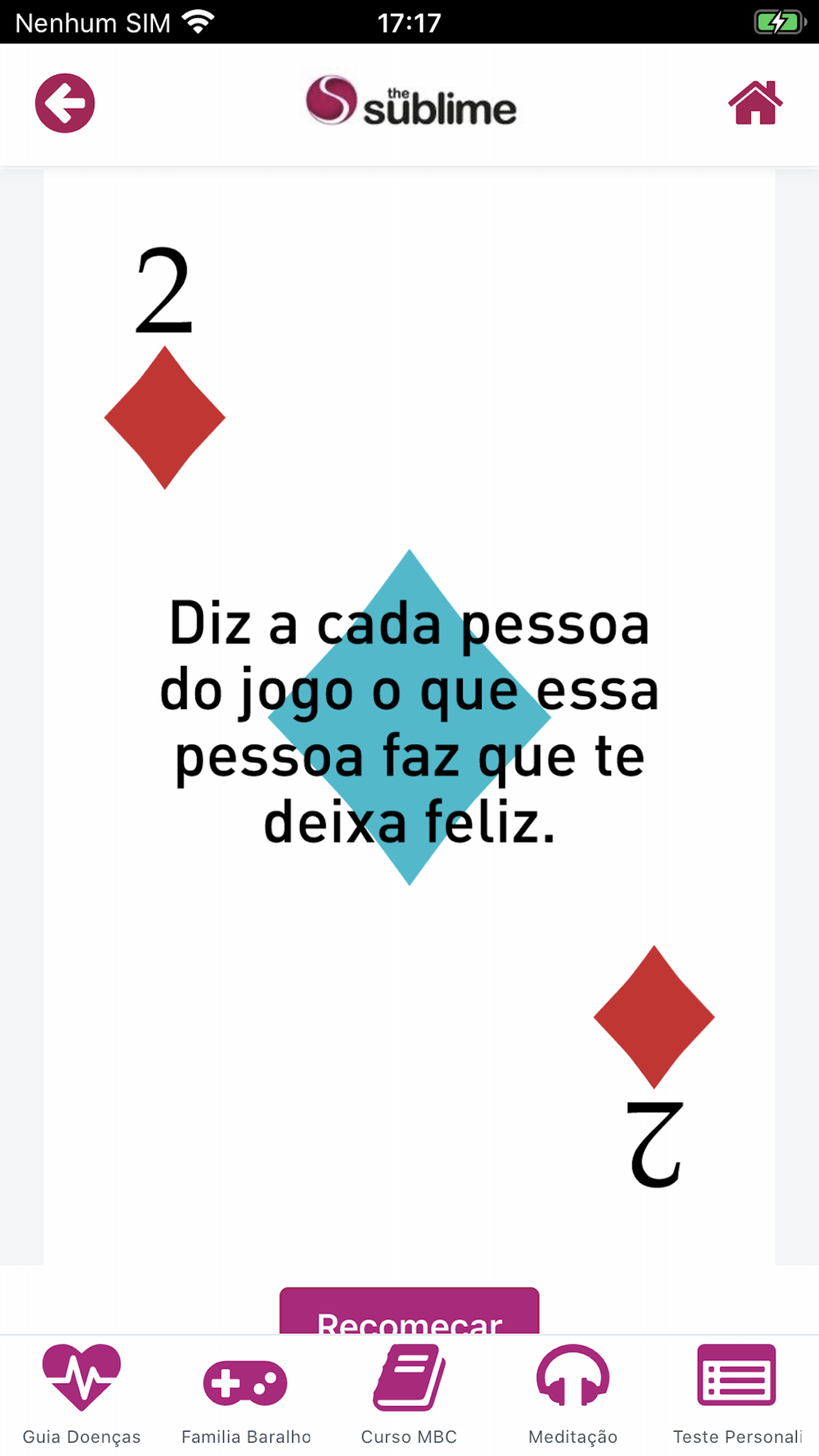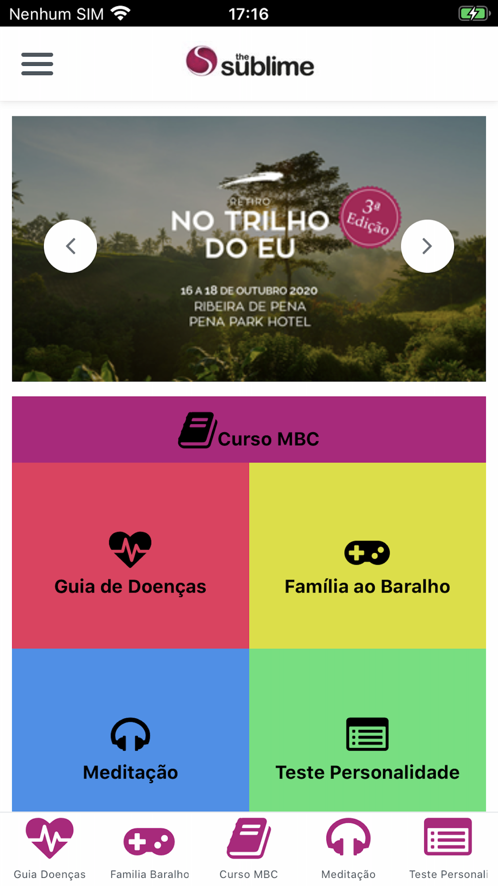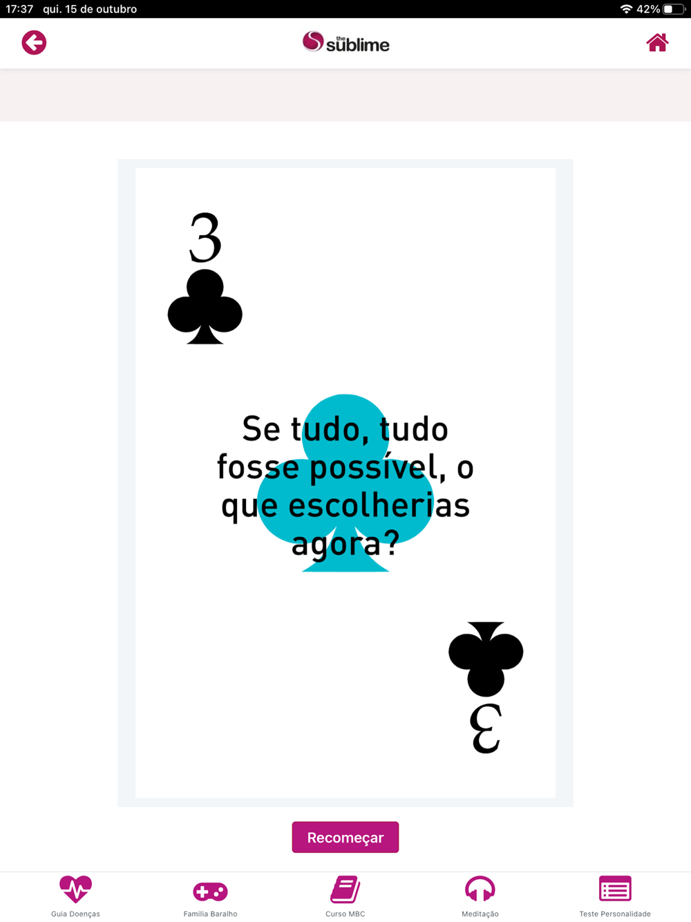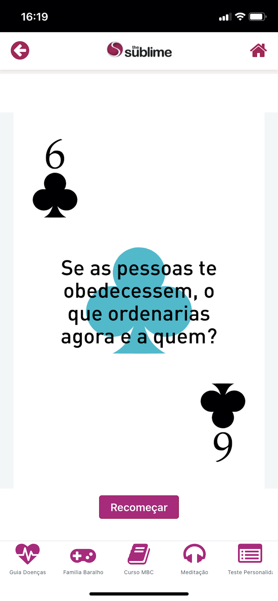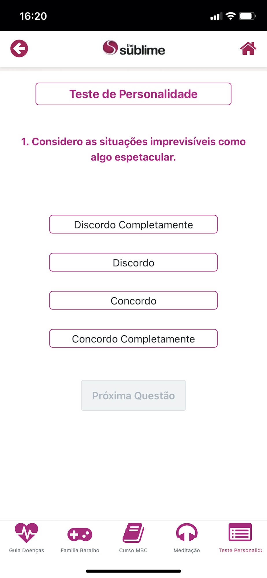 The Sublime é uma APP do projeto Sublime www.thesublime.org que visa oferecer um conjunto de ferramentas de apoio ao desenvolvimento pessoal, auto conhecimento e divertimento em família. Além de permitir uma maior conexão pessoal, através de meditações, possui um teste de personalidade onde podemos aferir qual o nosso tipo de personalidade com resultado imediato. Podem, de seguida, ingressar num curso online onde irão aprender muito mais sobre vocês próprios e os que vos rodeiam. Complementem isso com o jogo Família ao Baralho onde vão aprofundar o conhecimento que têm sobre a vossa família a jogar de uma forma divertida.