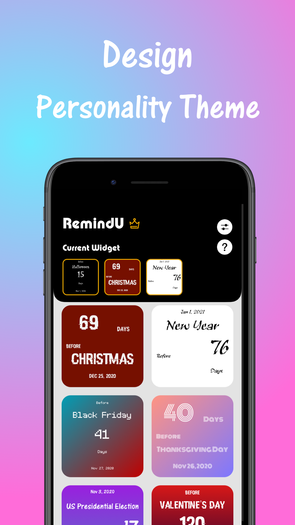 Countdown is a reminder and time management application that will remind you to cherish time at all times. Supports custom widget backgrounds, so you can see how long it is before your important date on the phone screen, reminding you that important things are about to happen.