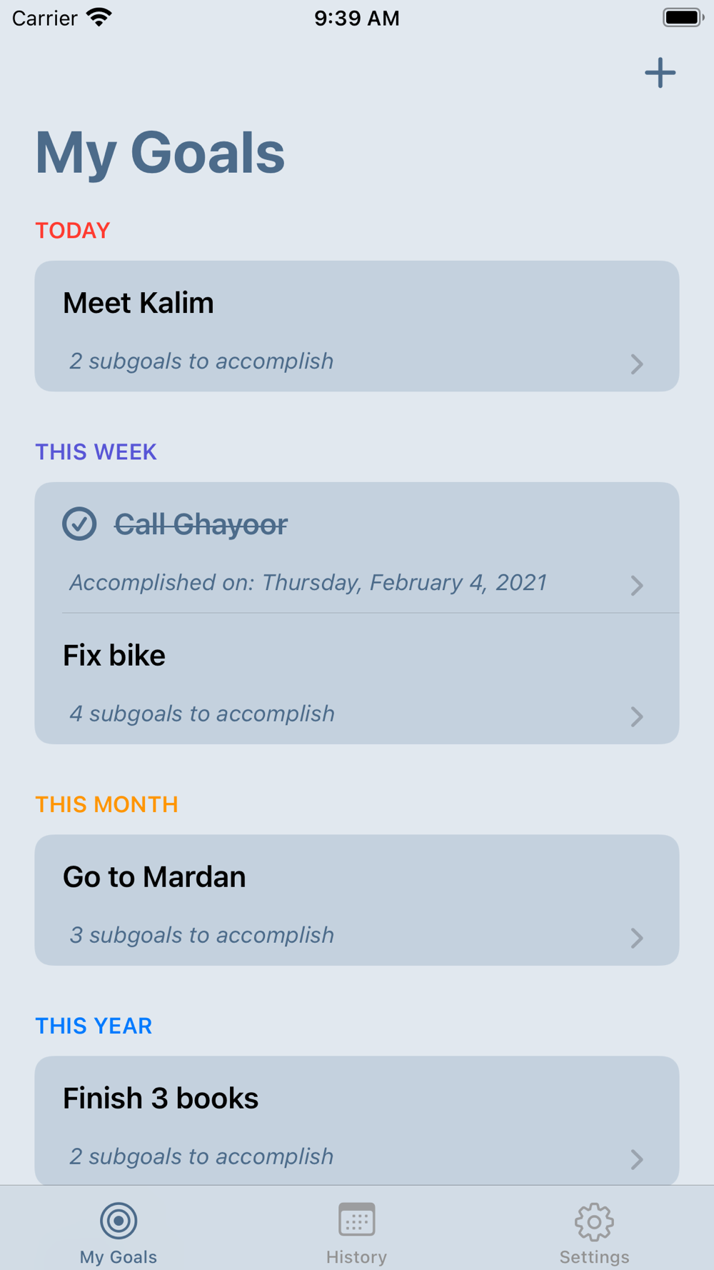 1. Create Daily, Weekly, Monthly, Yearly and Lifetime Goals - all organised in their corresponding categories.