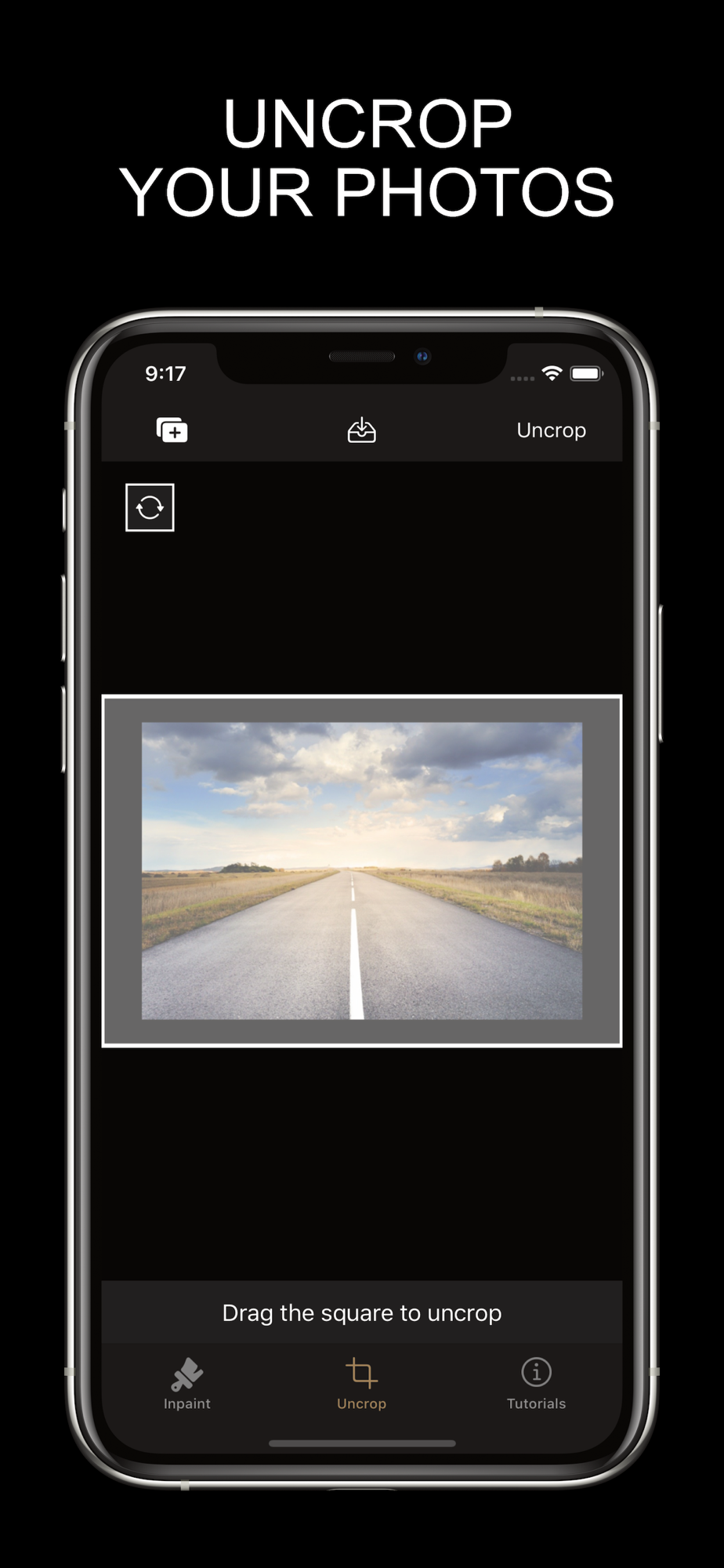 HyperPaint Pro also includes an image un-cropping tool. This lets you extend the borders of your photos and make them larger. Simply load an image, select its new size with the Uncrop Tool and press Apply!