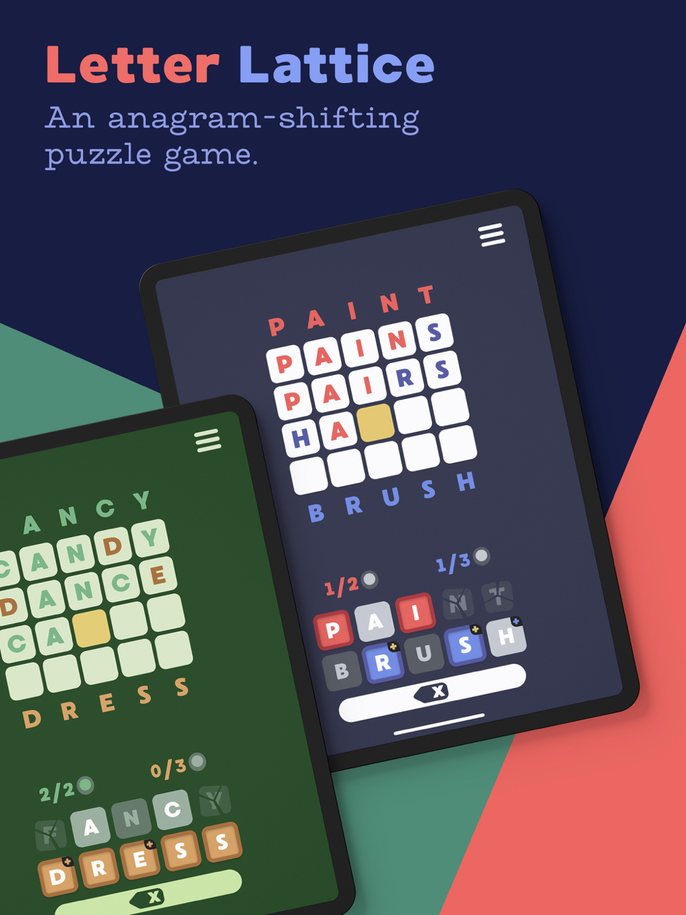 Most word games have you searching for anagrams within a single word. In Letter Lattice, puzzles use anagrams as connectors to morph from one word to another, each word you find being essential for solving the rest of the puzzle.