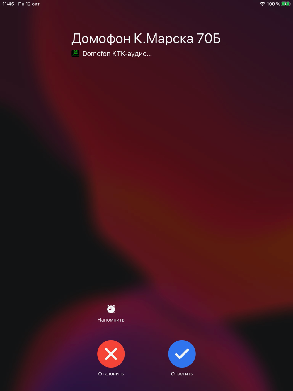Приложение для приема видеозвонков с домофона.