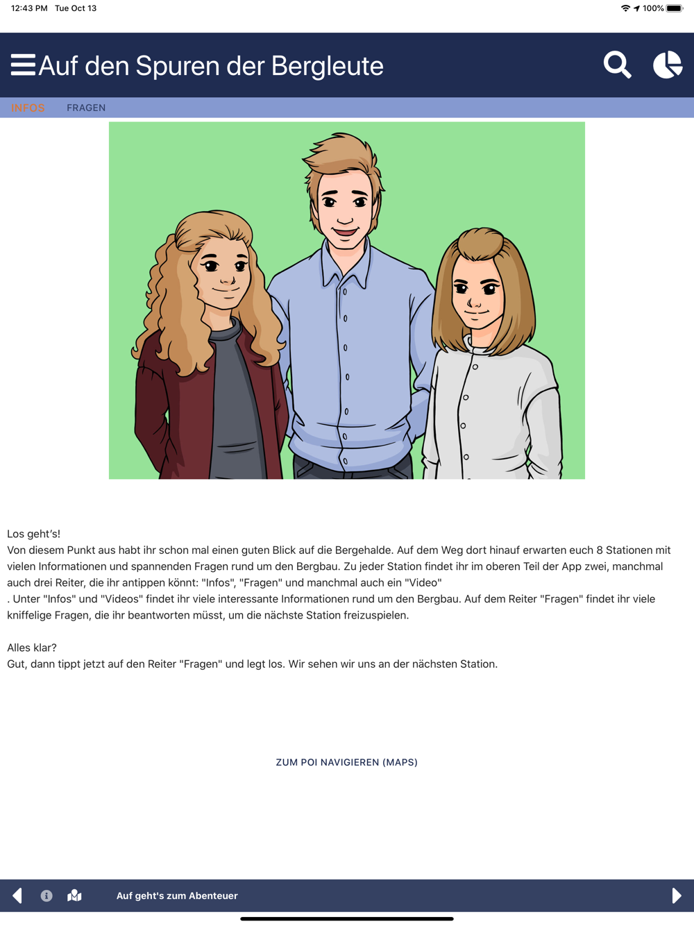 Die App führt euch auf einem Erlebnispfad um und über die Bergehalde Monte Barbara im saarländischen Bexbach. An mehreren Stationen erfahrt ihr mit Hilfe von Texten, Videos und Bildern viel Wissenswertes über die Arbeit und das Leben der Bergleute in früherer Zeit.