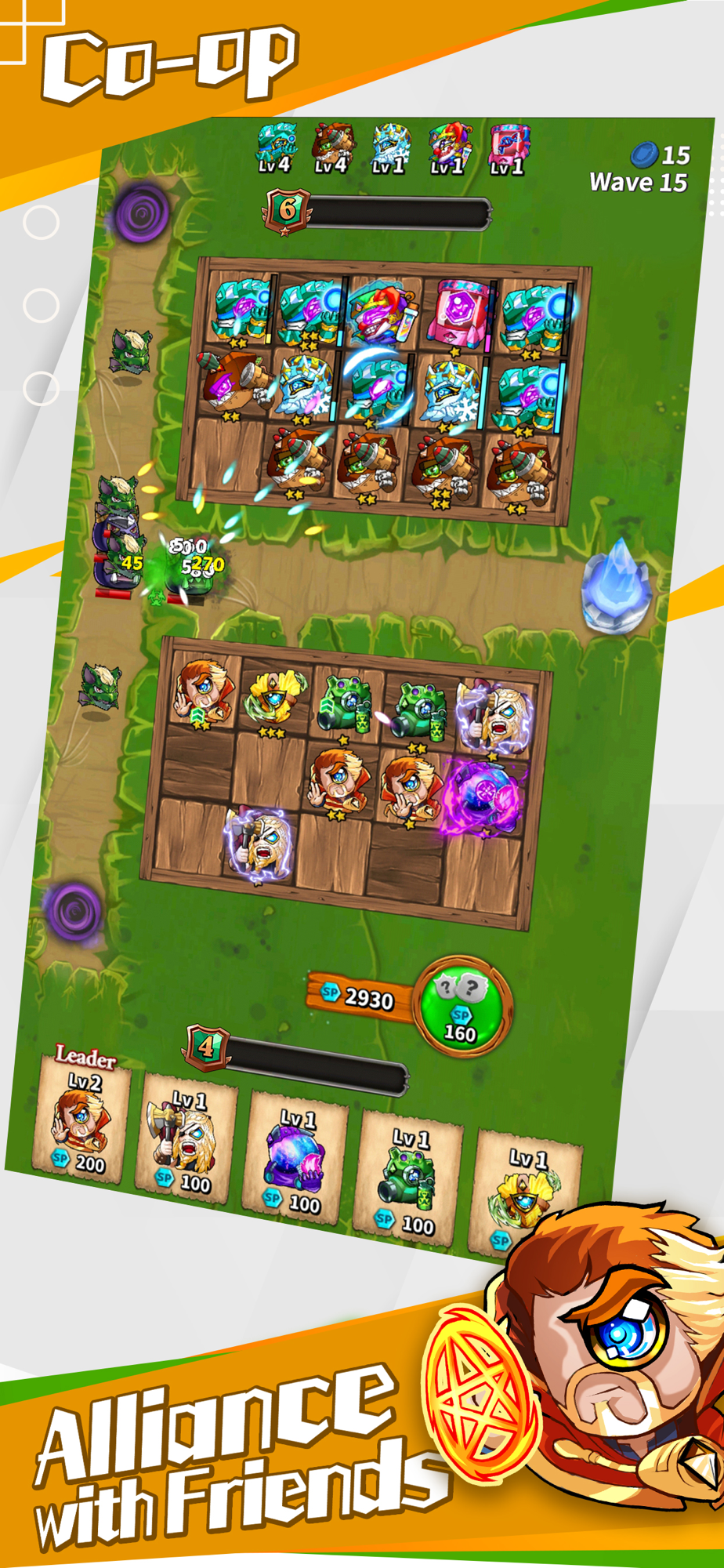 ● Co-op mode: Alliance with your teammate to defend the tower from the infinity waves of attack
