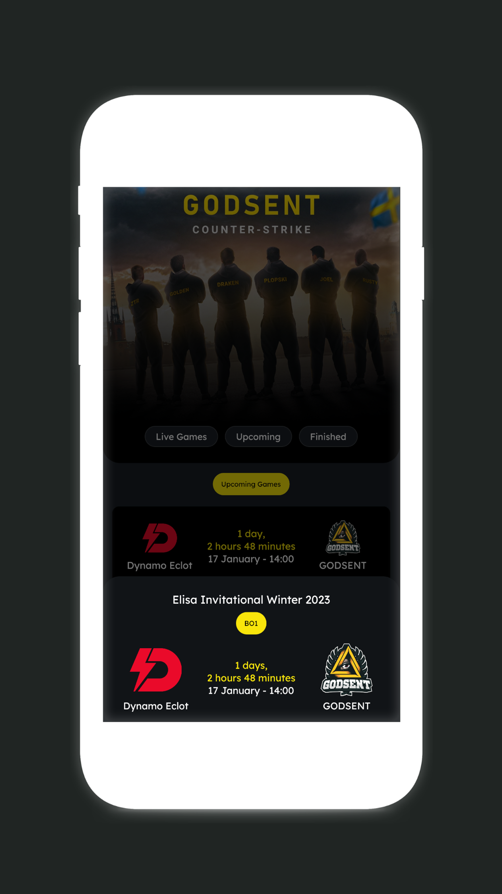 Keep up to date on upcoming and previous CS:GO games for the Swedish esport power-house; Godsent.