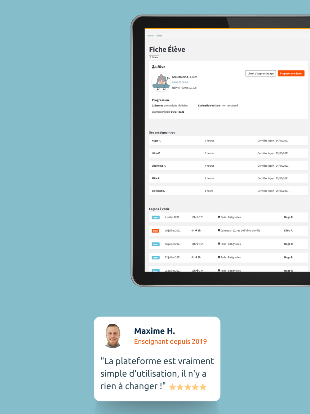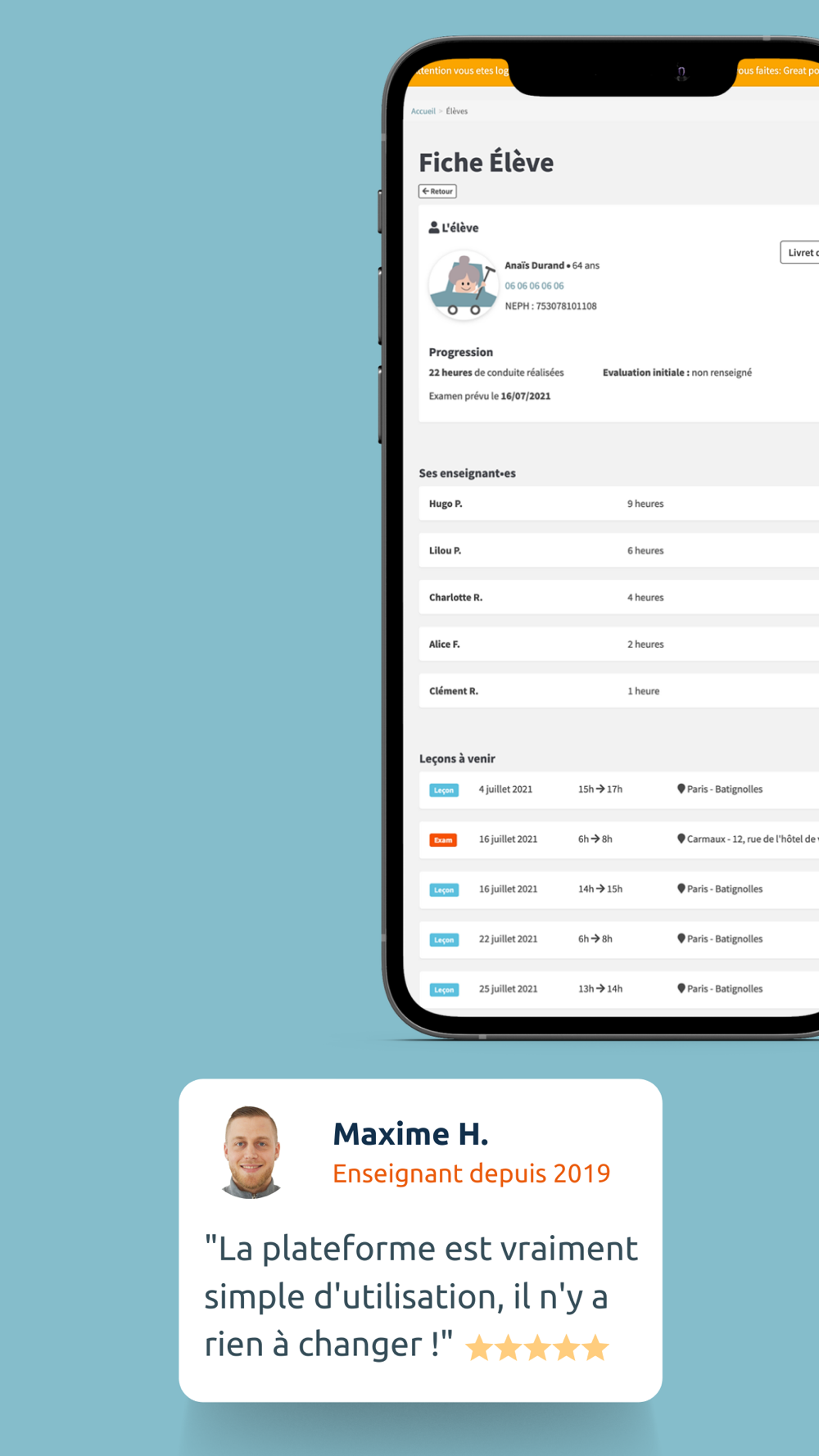 L'application En Voiture Simone - Moniteurs est dédiée aux enseignants de la conduite partenaires de notre réseau.