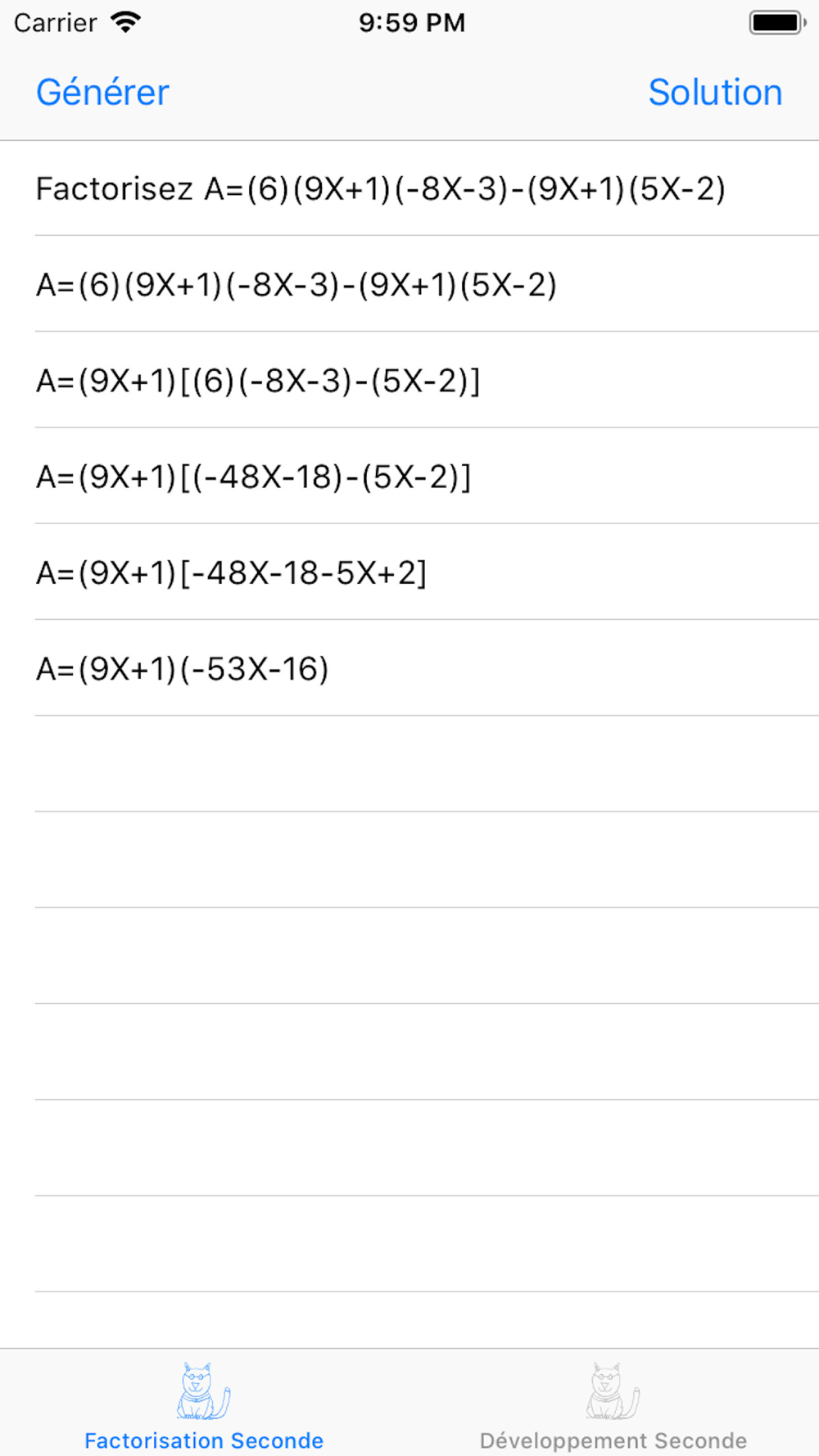 Mathou school blue is an mathematics exercise generator based on French school program of "seconde (14-15 years old children)". For each generated exercise, the full solution is proposed.