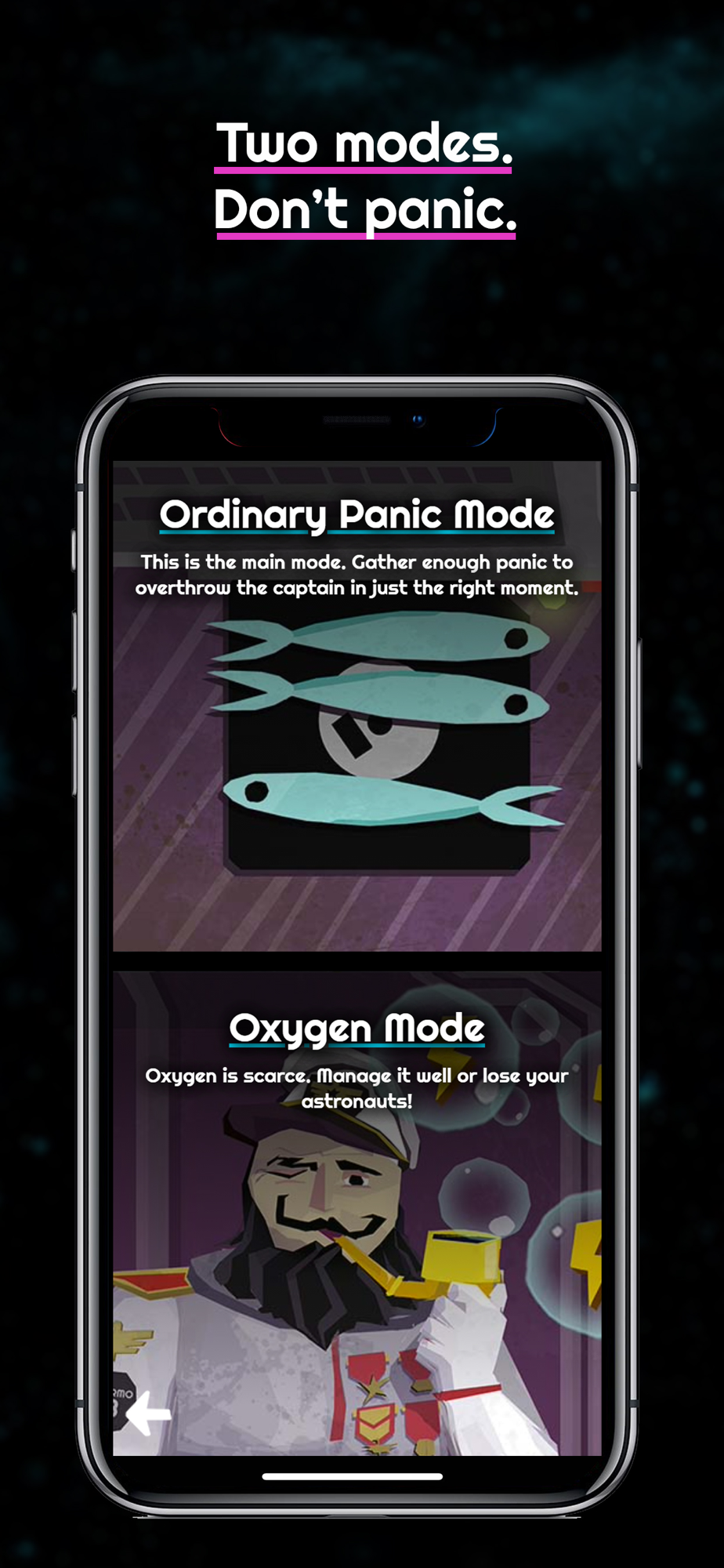 Each player controls a team of up to 4 astronauts with different abilities, possibly fooled by a murderous dolphin. During dangerous spacewalks the human players try to repair the sabotaged spaceship, unaware if their companion helps them or secretly wants to undermine the mission. The Captain’s command then decides about the fate of his crew members. But a crew in panic can easily overthrow his shifty captain!