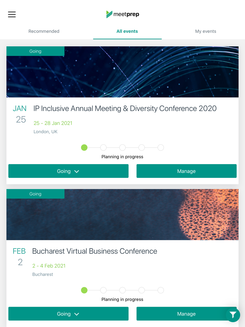 Define your business networking objectives and automatically discover which event is the most suitable for you in terms of connections, budget and time.