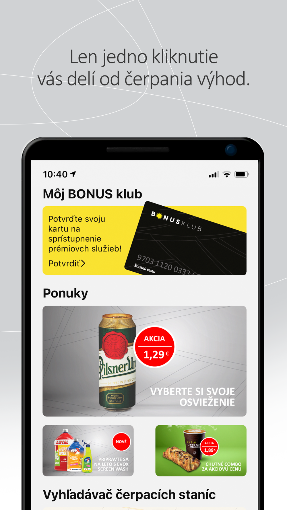 Do you want to always have your BONUS card at hand? Are you interested in current unique discount coupons directly on your phone? Do you want to be sure on the way that you will find your favorite services and products at each of your stops at Slovnaft? Download the Slovnaft GO app!