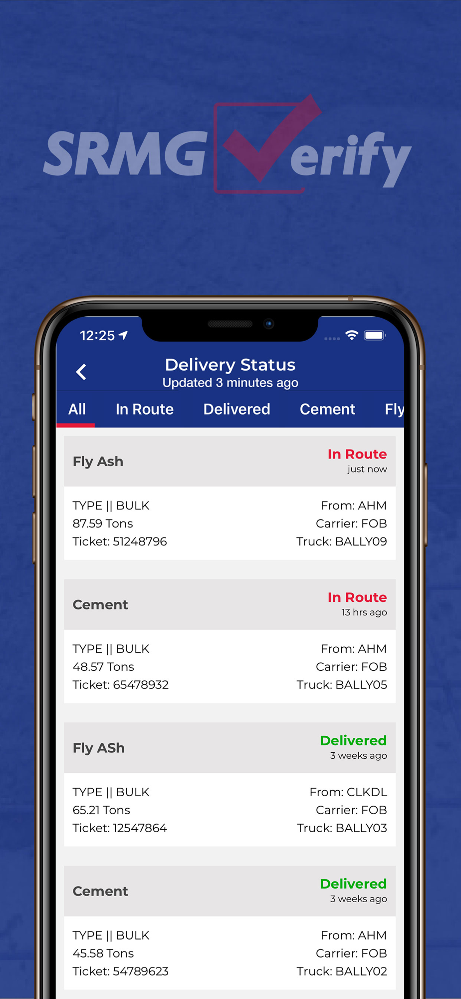 SRMG Verify users can scan SRMG tickets and give the customer the ability to see the shipping status of their expected delivery at any moment in time.