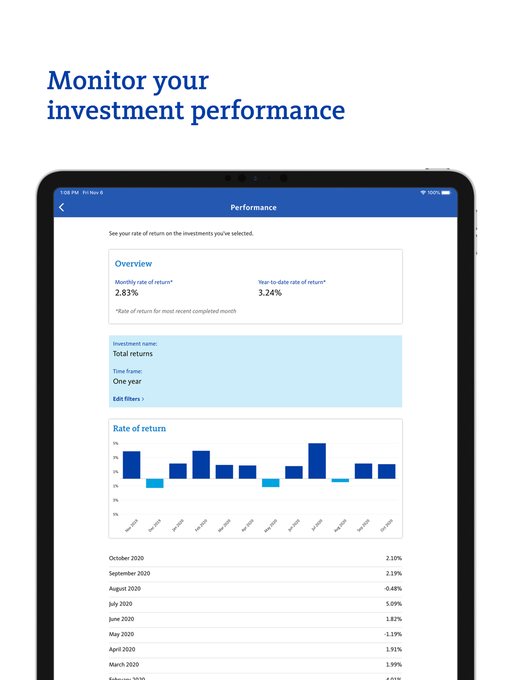 Whether you want to see how your investments are performing or check on withdrawal amounts, you can find information about your retirement account on our easy-to-use app.