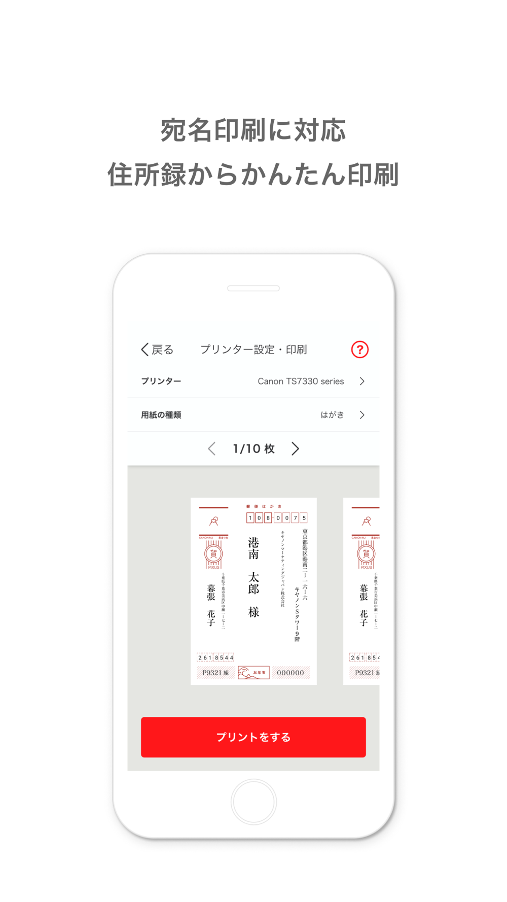 ・直観的な簡単操作でスマホから年賀状プリント可能です。