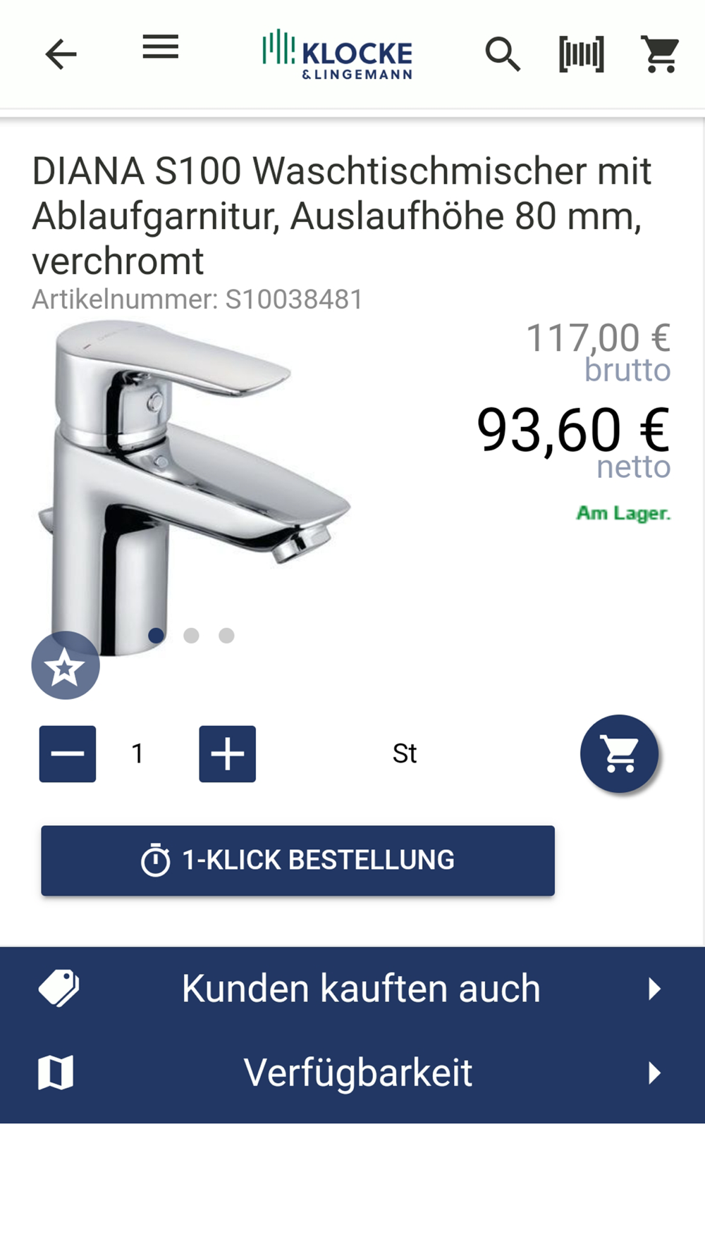 Nutzen Sie die Möglichkeiten, immer mobil auf den Online-Shop der Firma Klocke & Lingemann zuzugreifen. Mit dieser App können Sie jederzeit von unterwegs z.B. Artikelverfügbarkeiten prüfen, aktuelle Aufträge aufrufen oder eine Bestellung erstellen und in Auftrag geben. Damit sind Sie flexibler als je zuvor. Über eine einfache Artikelsuche mit Suchergebnis und Detailansicht können Artikel abgefragt, Verfügbarkeiten geprüft und Artikel bestellt werden. Zusätzlich wurde das Scannen von Barcodes über die Kamera integriert. Damit finden Sie Artikel auch ohne Suchfunktion. Mit der App haben Sie Zugriff auf genau die Bestandteile des Online‐Shops, welche Sie von unterwegs aus benötigen ô das ganze natürlich optisch entsprechend aufbereitet und leicht zu bedienen.