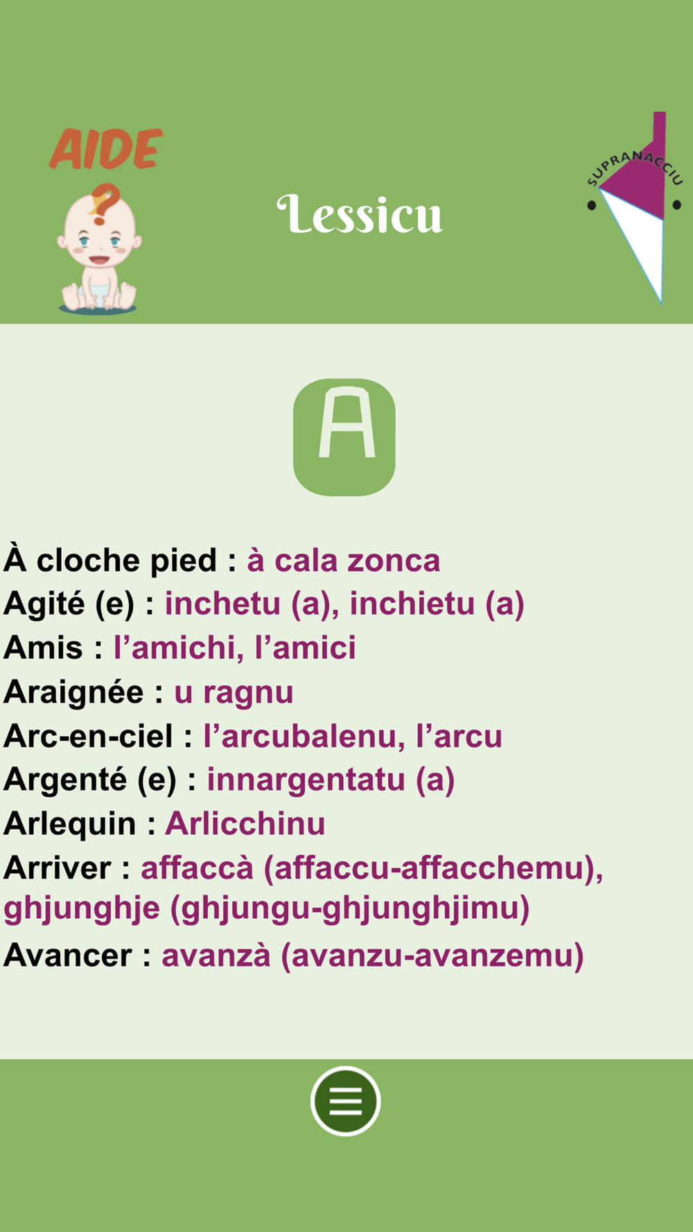 Les personnels des métiers de la petite enfance et les parents trouveront ici des phrases usuelles, du vocabulaire, des comptines et des chansons en langue corse pour leur pratique quotidienne. Cela concerne les échanges avec les enfants, entre collègues et entre mammareddi et parents. Des indications de prononciation et surtout l’écoute de tous les mots, phrases etc permettront des progrès rapides. De courtes vidéos-tutoriels aideront en outre à la prise en main des outils (application, livre, affiches, site).