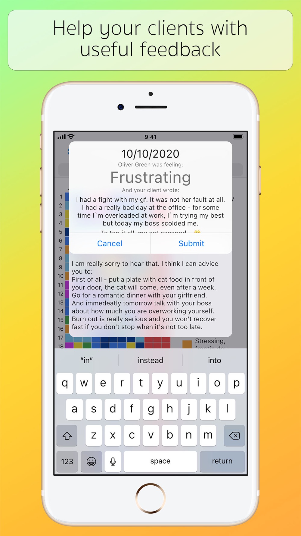 * find clients, notice patterns in their day/behaviour and help them with a daily comment