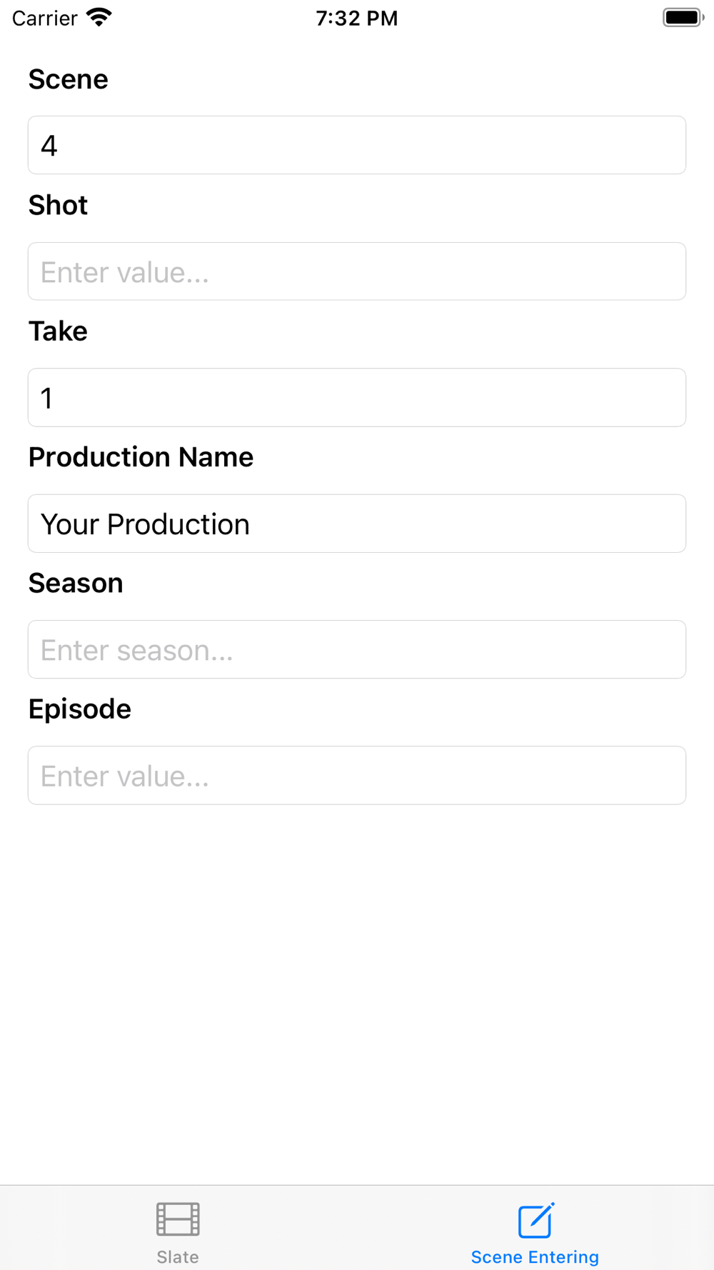 Double tapping on the Take and Scene will automatically increment the value. You can also enter in the scene, shot, take, and episode as well.