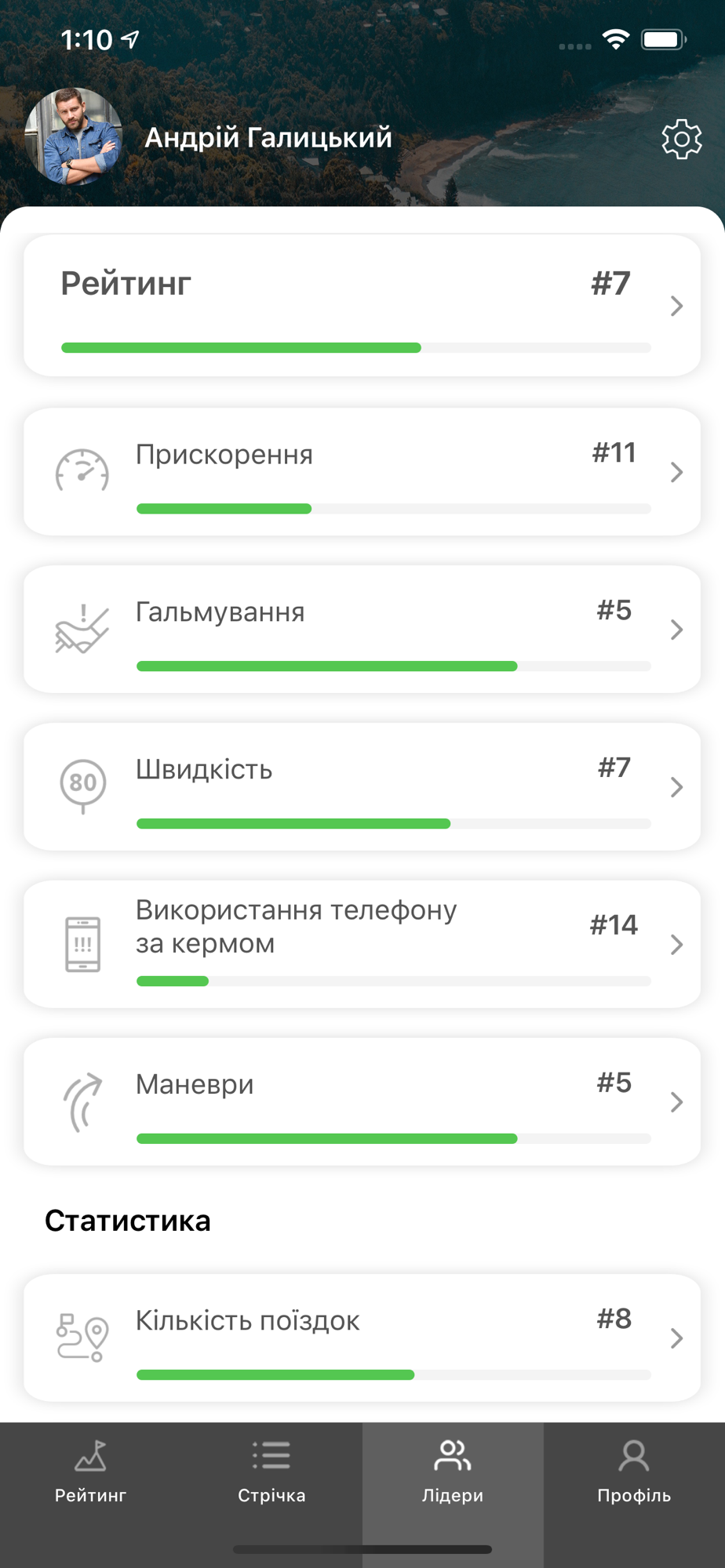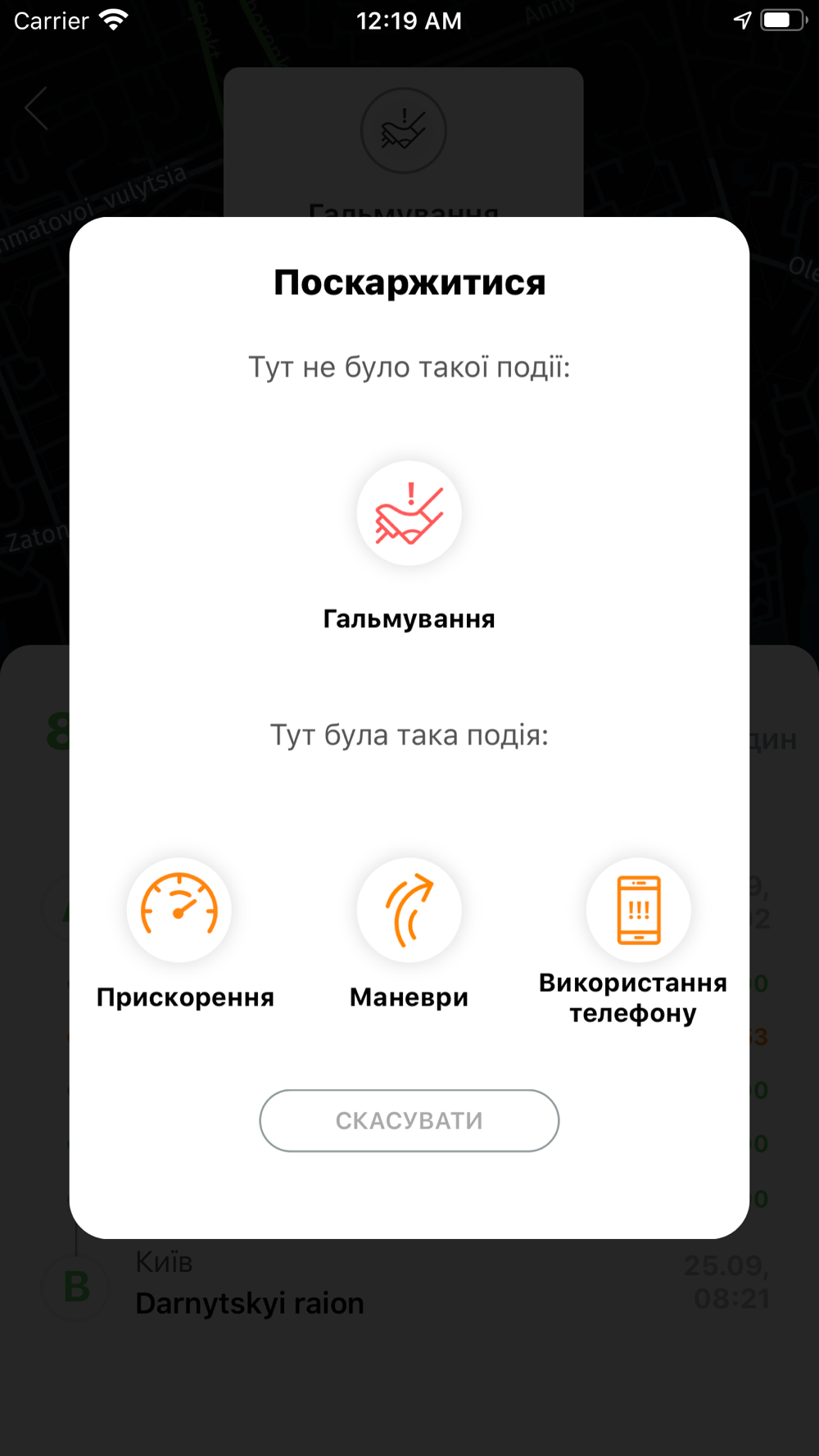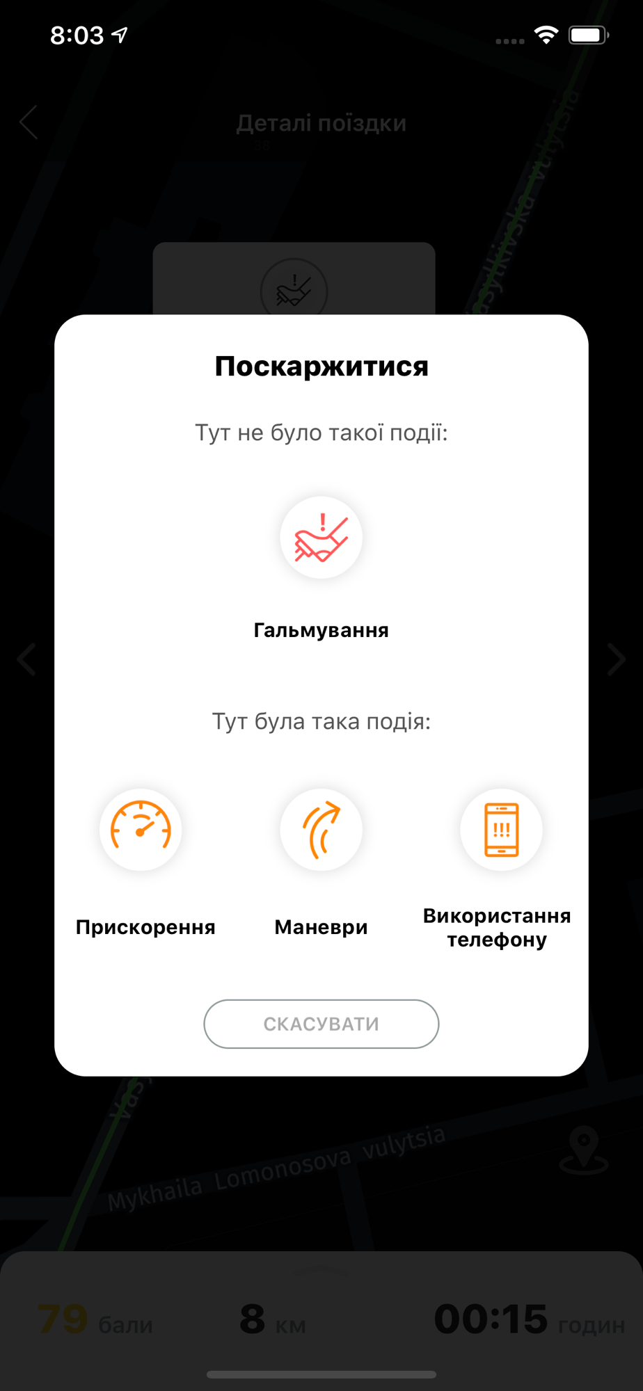 Для оцінки стилю водіння автомобіля мобільним застосунком Smart Drive враховуються такі параметри: