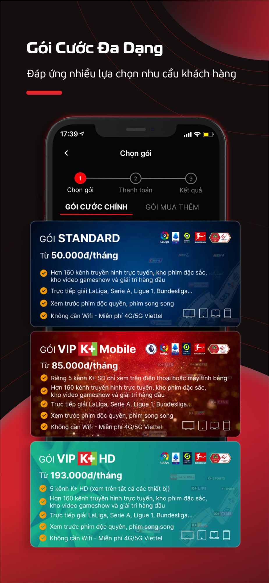 • Gần 200 kênh truyền hình, đa dạng và đặc sắc: K+,On Football, On Sports, Cartoon Network, Discovery, HBO, Cinemax, ....