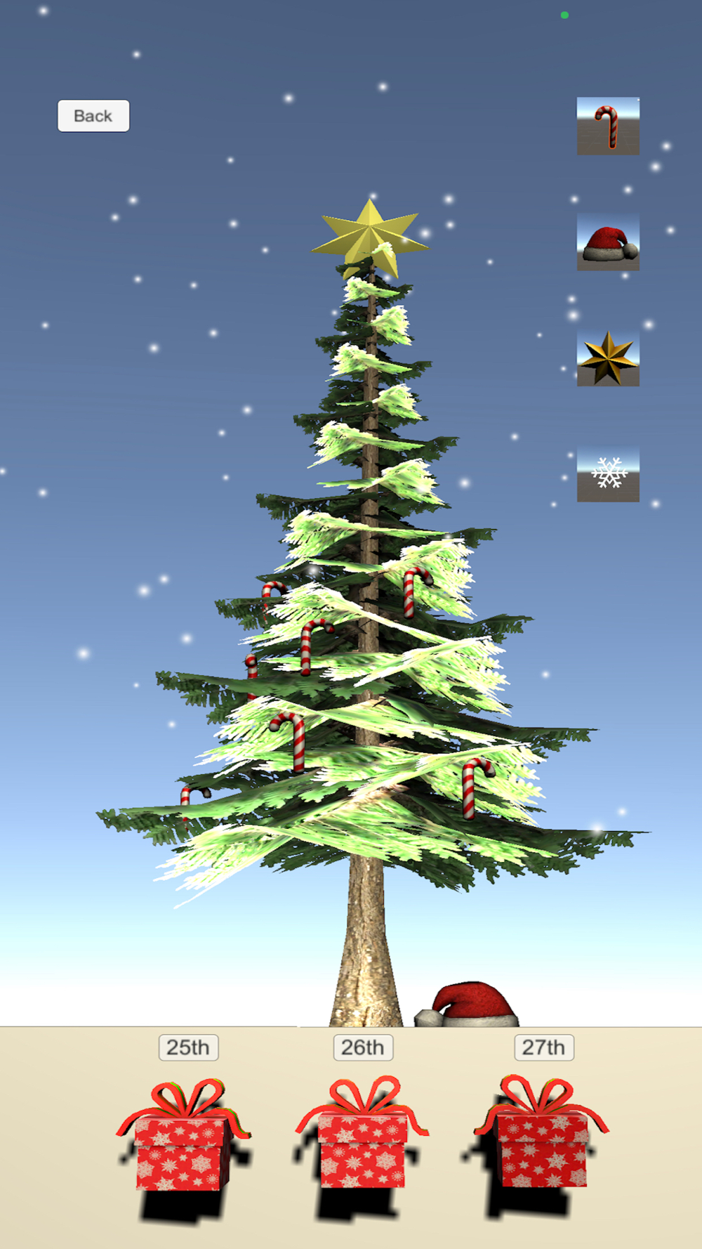 Enjoy AR Christmas experience. Place the tree on any flat surface and turn on the Christmas ornament and snow. Receive present for the next few days.
