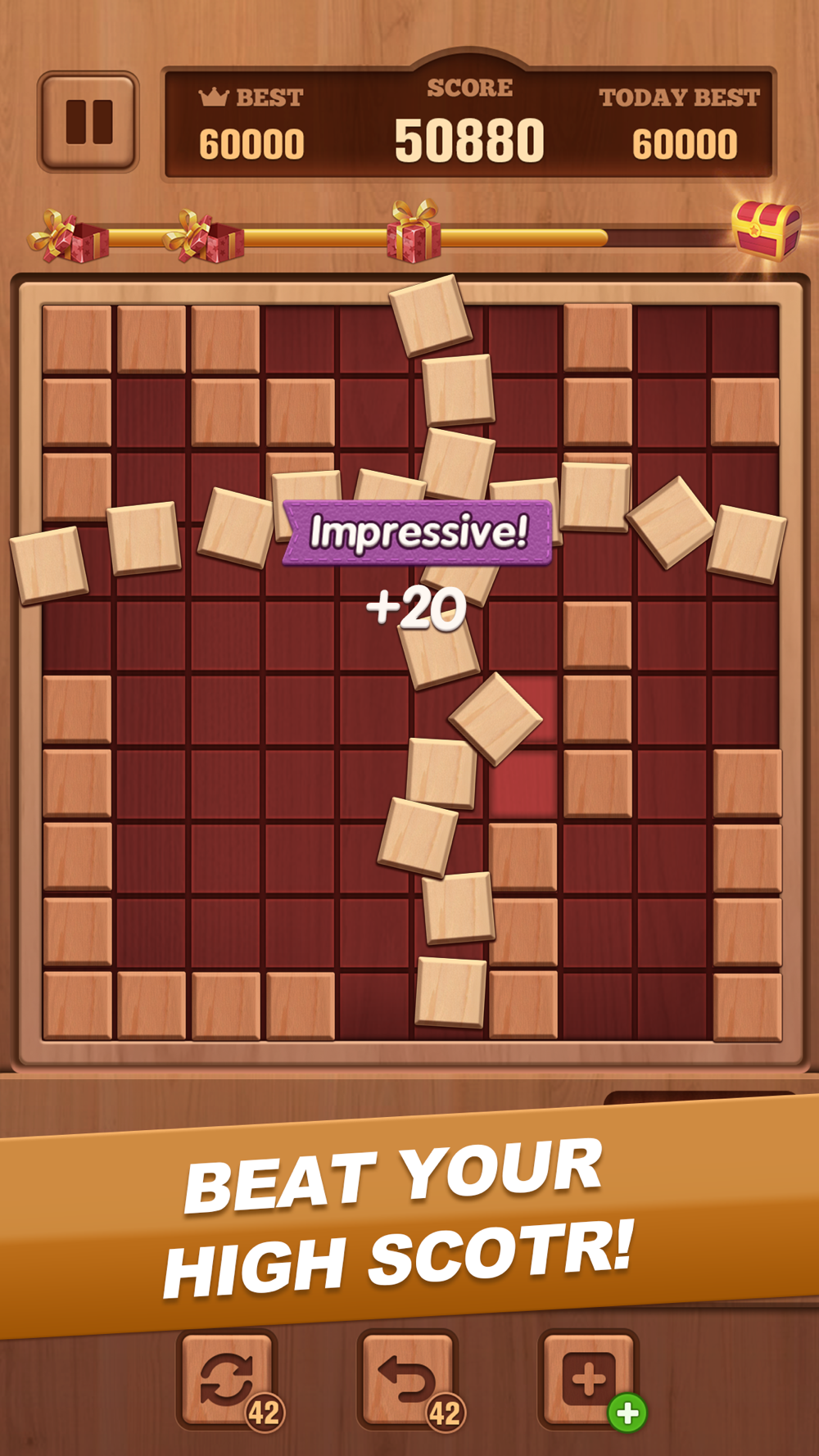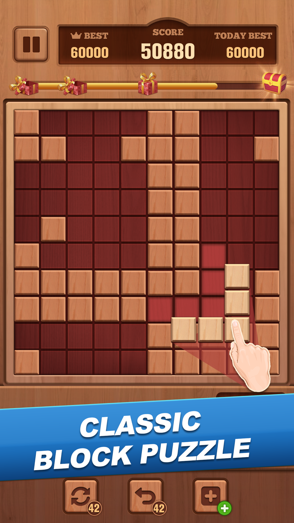 Woody Block, the classic block puzzle, is coming with new features! Enjoy the classic game and explore more fun with new items. When you play Woody Block, you can: Enjoy it easily. It is free to play! There is no time limit. Start playing the game anytime you want. Relax and relieve your stress. Drag woody pieces and fill up lines to clear lines. The more you clear, the more you score. Boost your brain power. Arrange the board and clear multiple lines one time to get more bonus! Challenge yourself and beat the high score. Use interesting items. Unique items bring more fun. Holder gives players more choices when in danger. Rotate blocks to fit perfectly. Bonus Block help players develop a better strategy. Correct mistakes by using Undo. Complete Challenge and get trophies. Complete new challenges every day. Finish one-month challenges and win unique trophies! Share and play it with your friend, spend time together and get close to each other! Enjoy the classic puzzle game, Woody Block and become a master!
