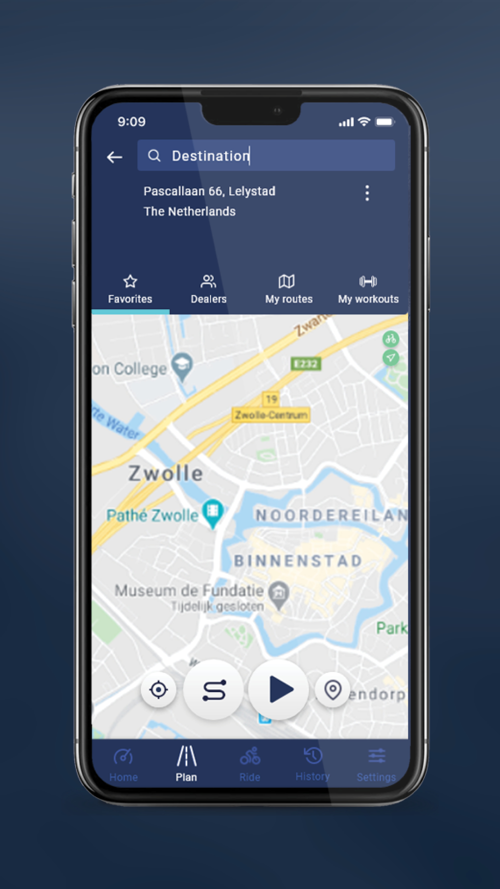 Use the RideControl app for turn-by-turn navigation specifically designed for the bike. If your E-Bike is equipped with a compatible RideControl EVO display you can synchronize turn by turn navigation to your display, so there is no need to keep your phone at hand.