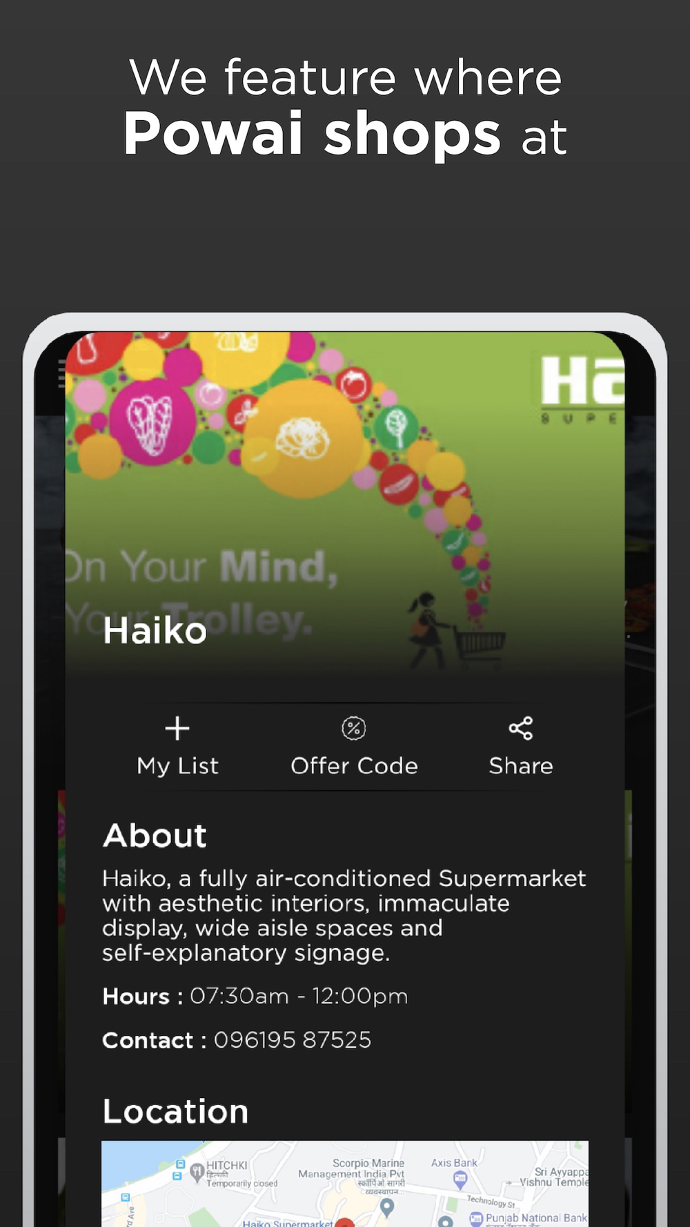 This application is also a means for everyone to connect better and to become a platform for all businesses, brands, events and initiatives to be connected to the people of Powai at large. Restaurants, malls, salons, premium brands and businesses of all shapes and sizes with an interest to reach out to the affluent citizens of Powai can reach out via this application.