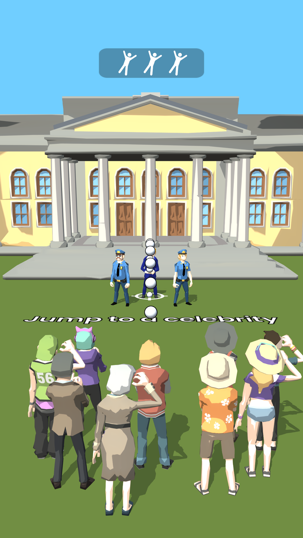 Use your jumping skills to hug celebrities without being caught by police officers and SPs.