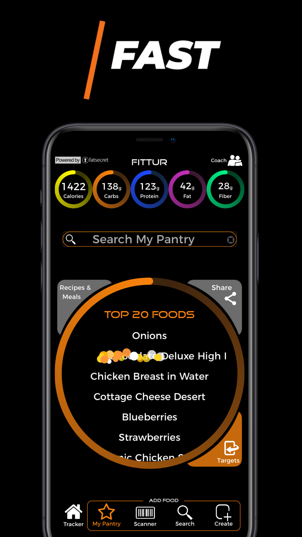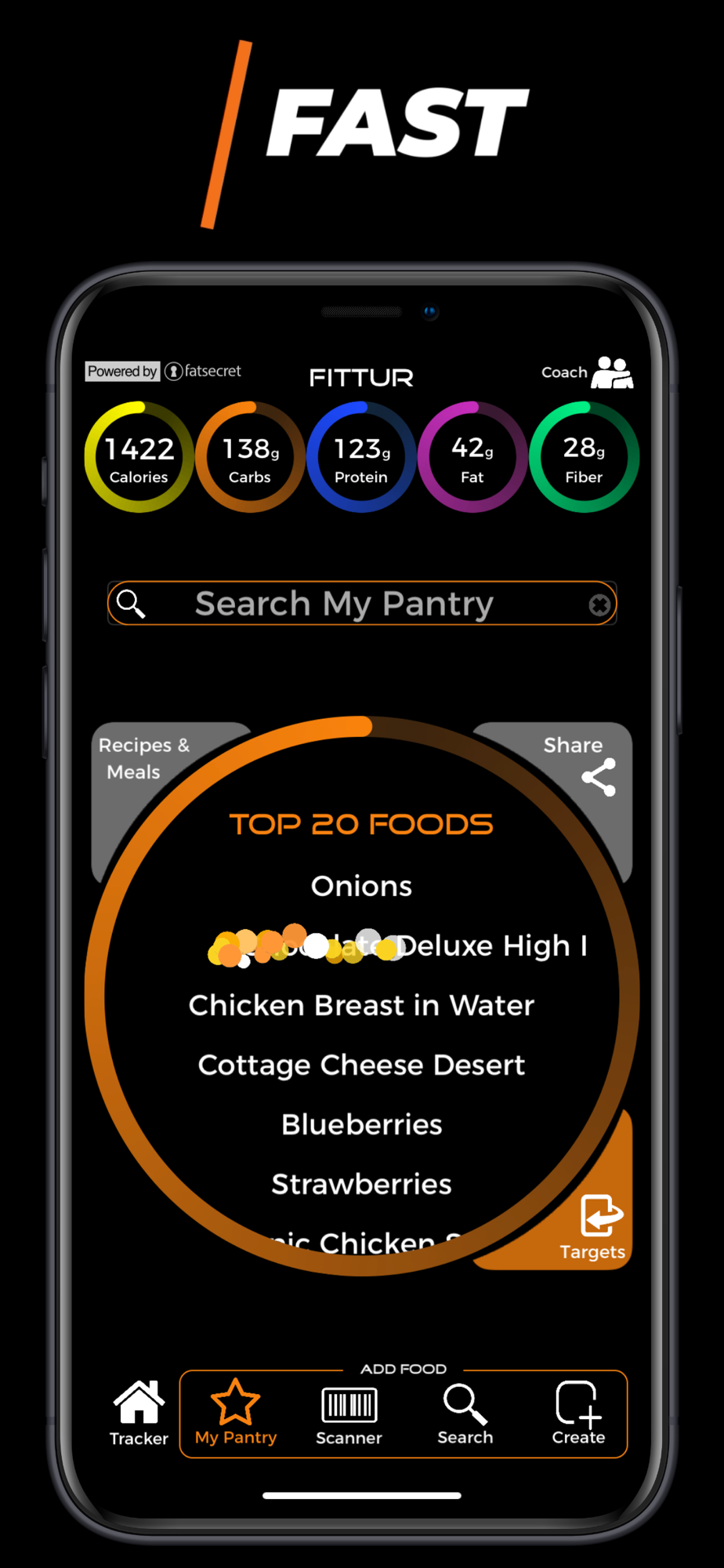 Tracking food with Fittur’s Muscle Building Food Tracker is simple and fast. Swipe or scan foods onto your tracker in seconds. Track your entire day in a few minutes.